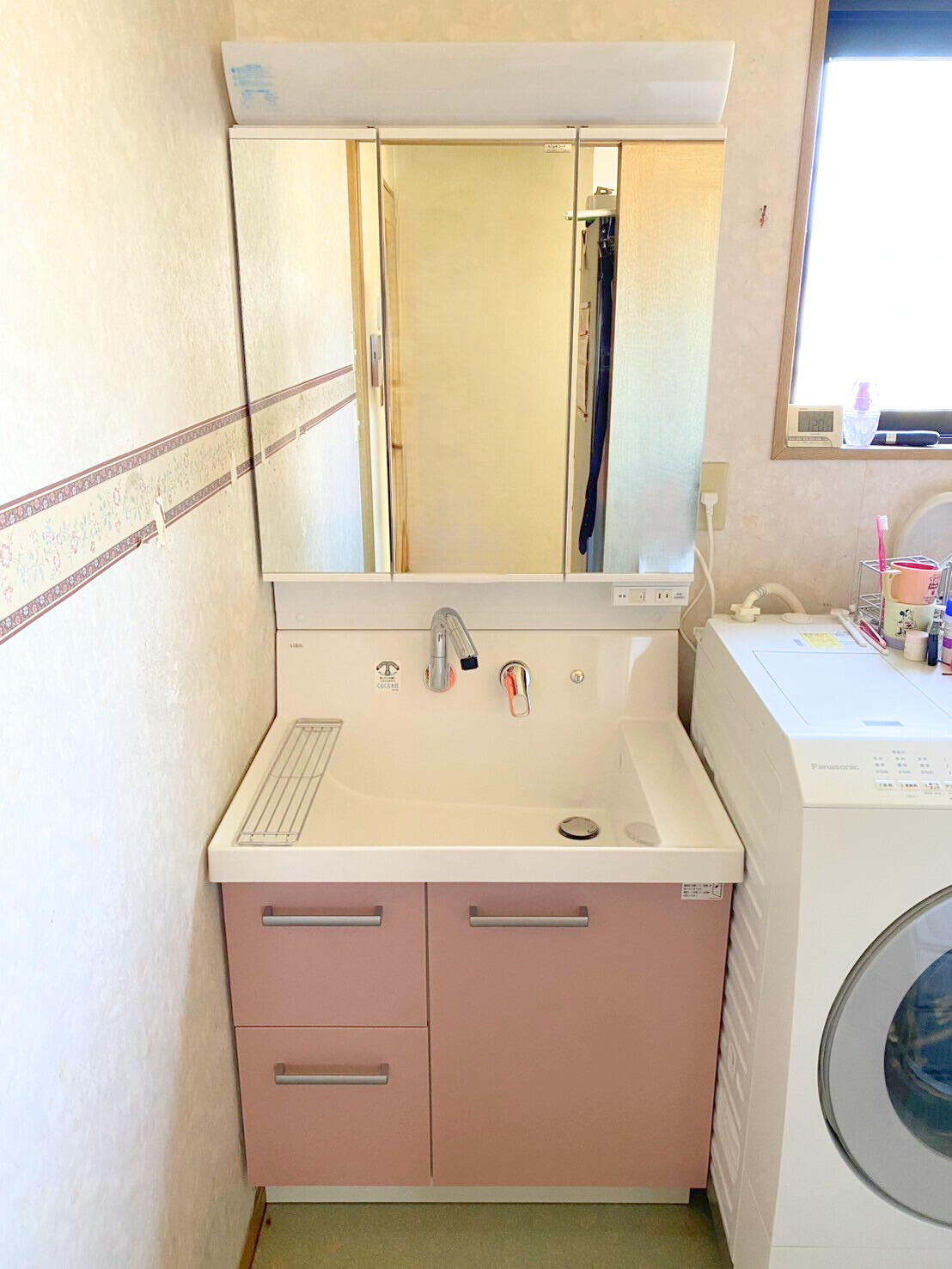 LIXIL 洗面化粧台「ピアラ」をスモーキーピンクでコーディネート! 落ち着いた優しいカラーで、清潔感と上品さをプラス。 毎日の暮らしに寄り添う機能性とデザインを兼ね備えた洗面化粧台です。
