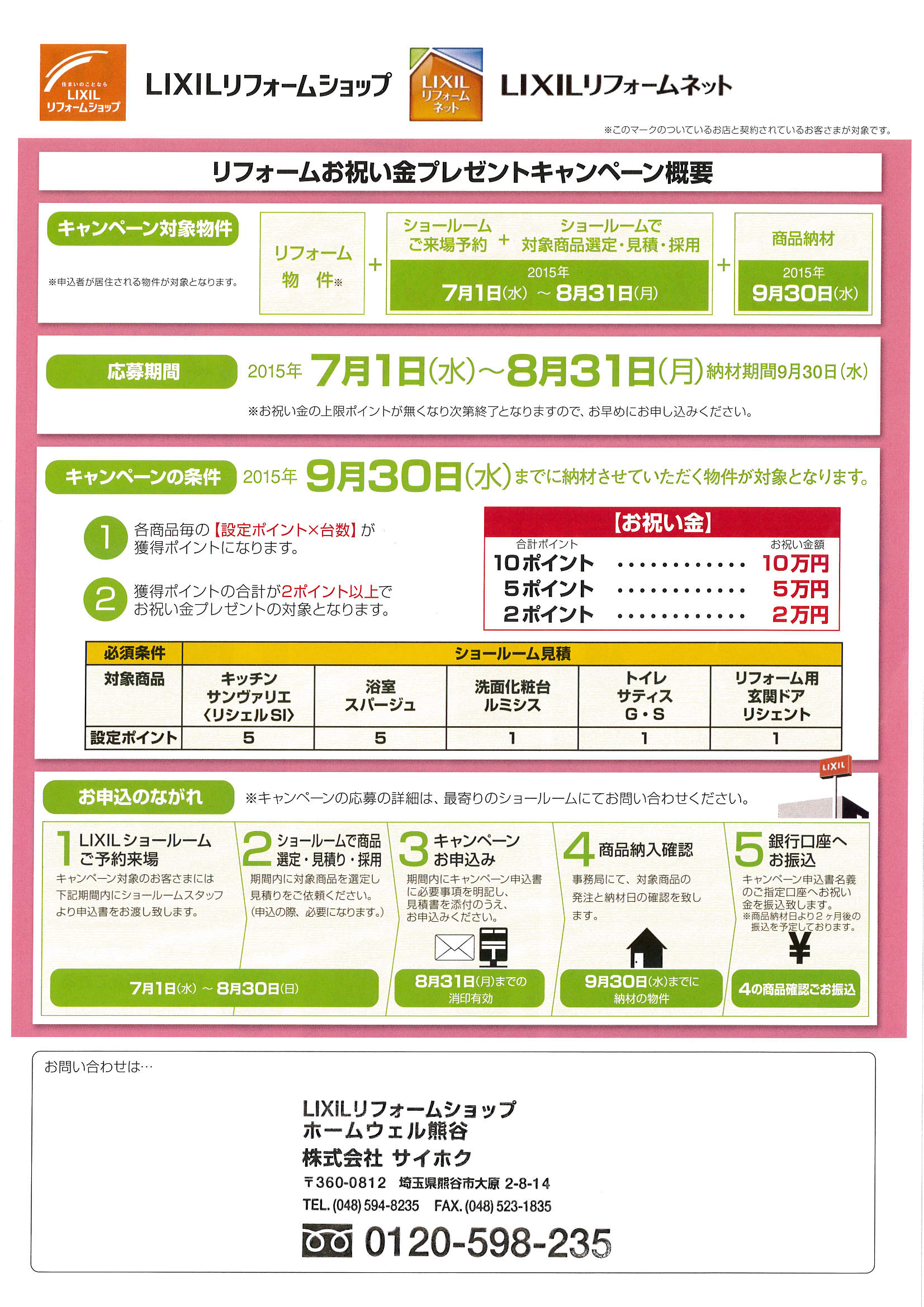 またはホームウェル熊谷までご連絡ください。