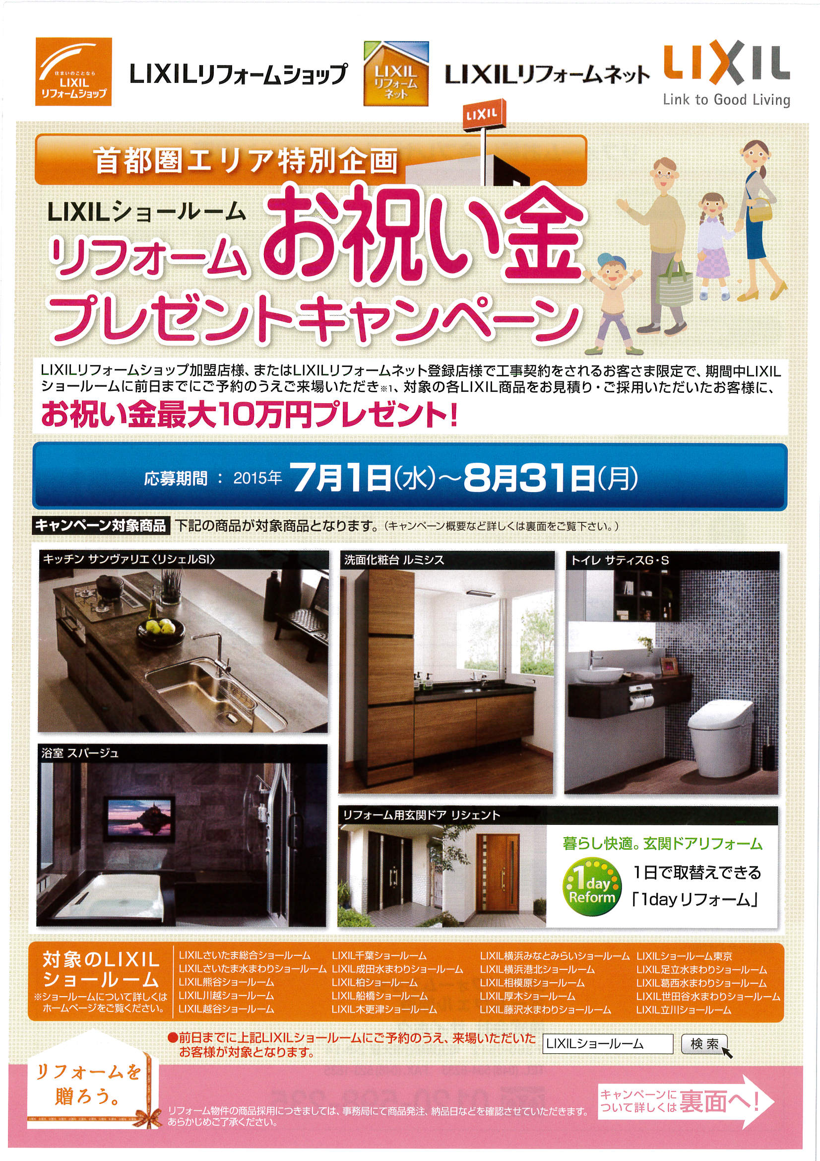 詳しくは対象ショールーム LIXIL熊谷ショールーム