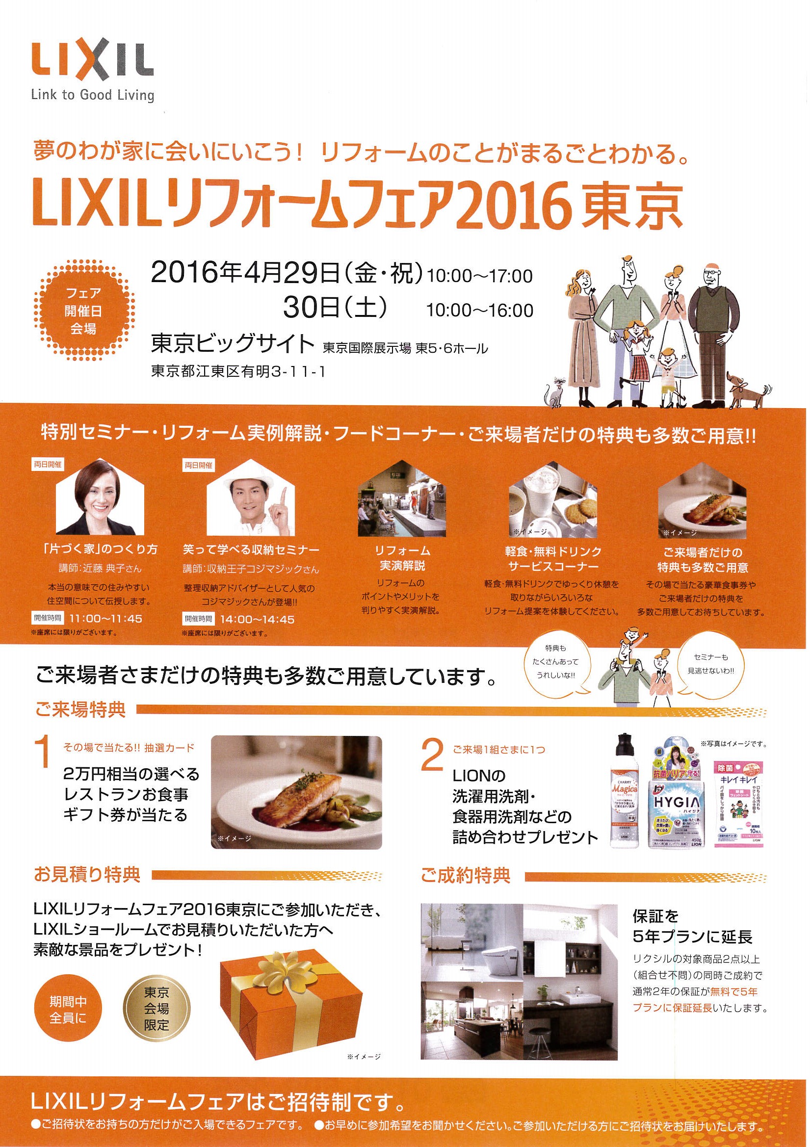 東京ビッグサイトでLIXILリフォームフェア2016東京を開催します。
