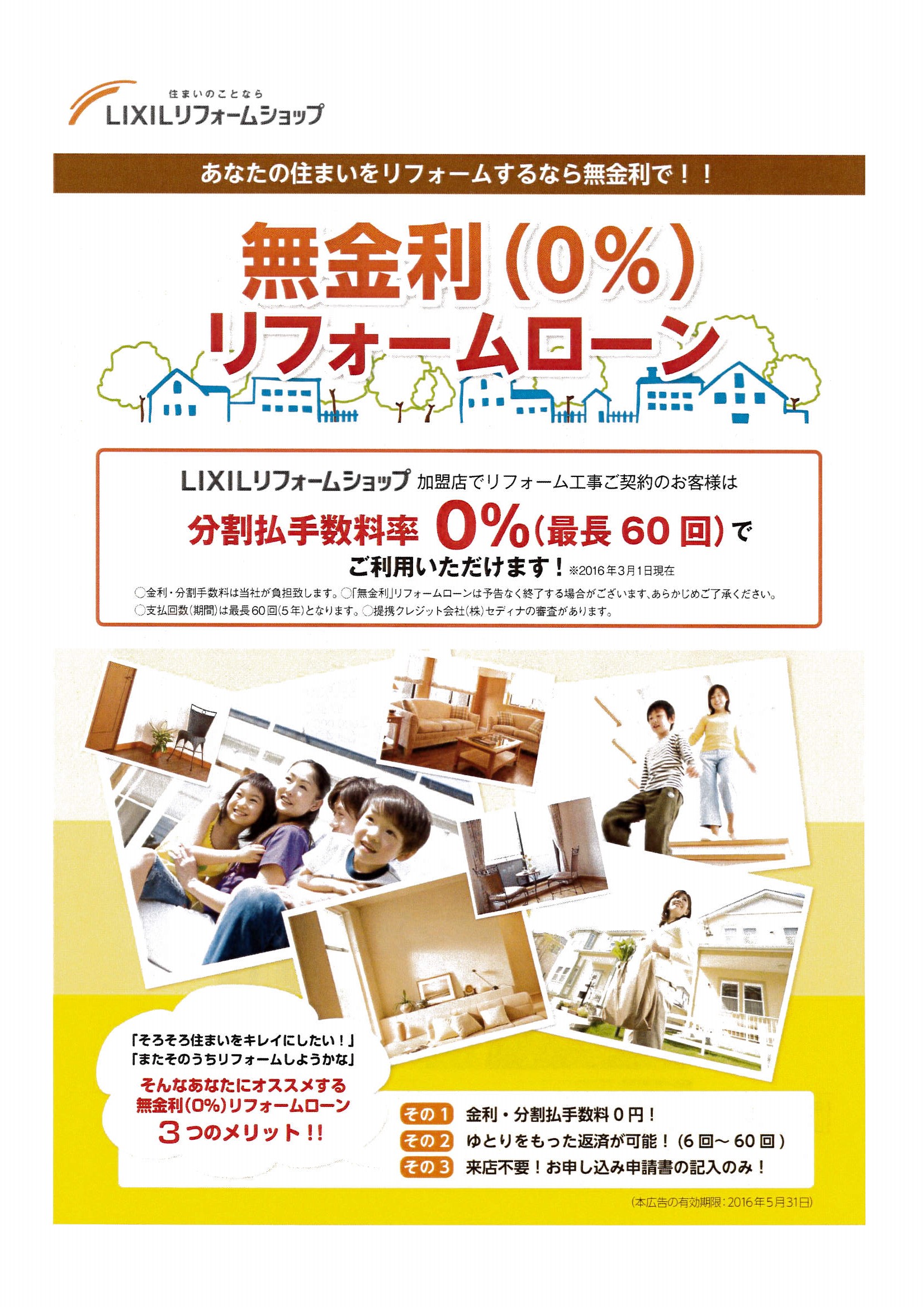 ※『無金利』リフォームローンは予告無く終了する場合がございます