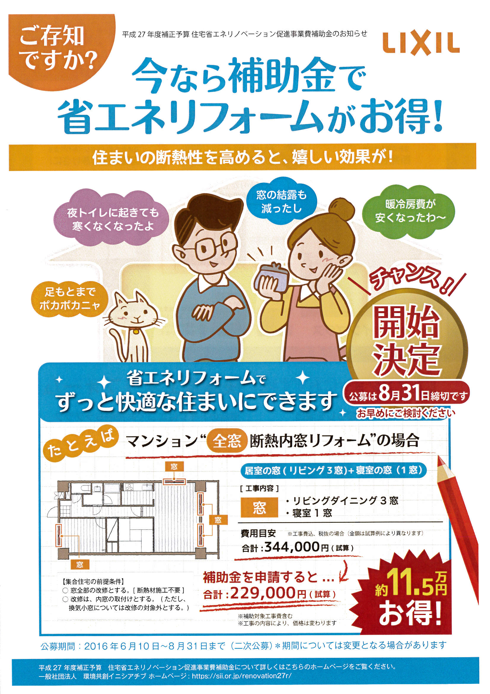 住宅省エネリノベーション促進事業費補助金のお知らせです
