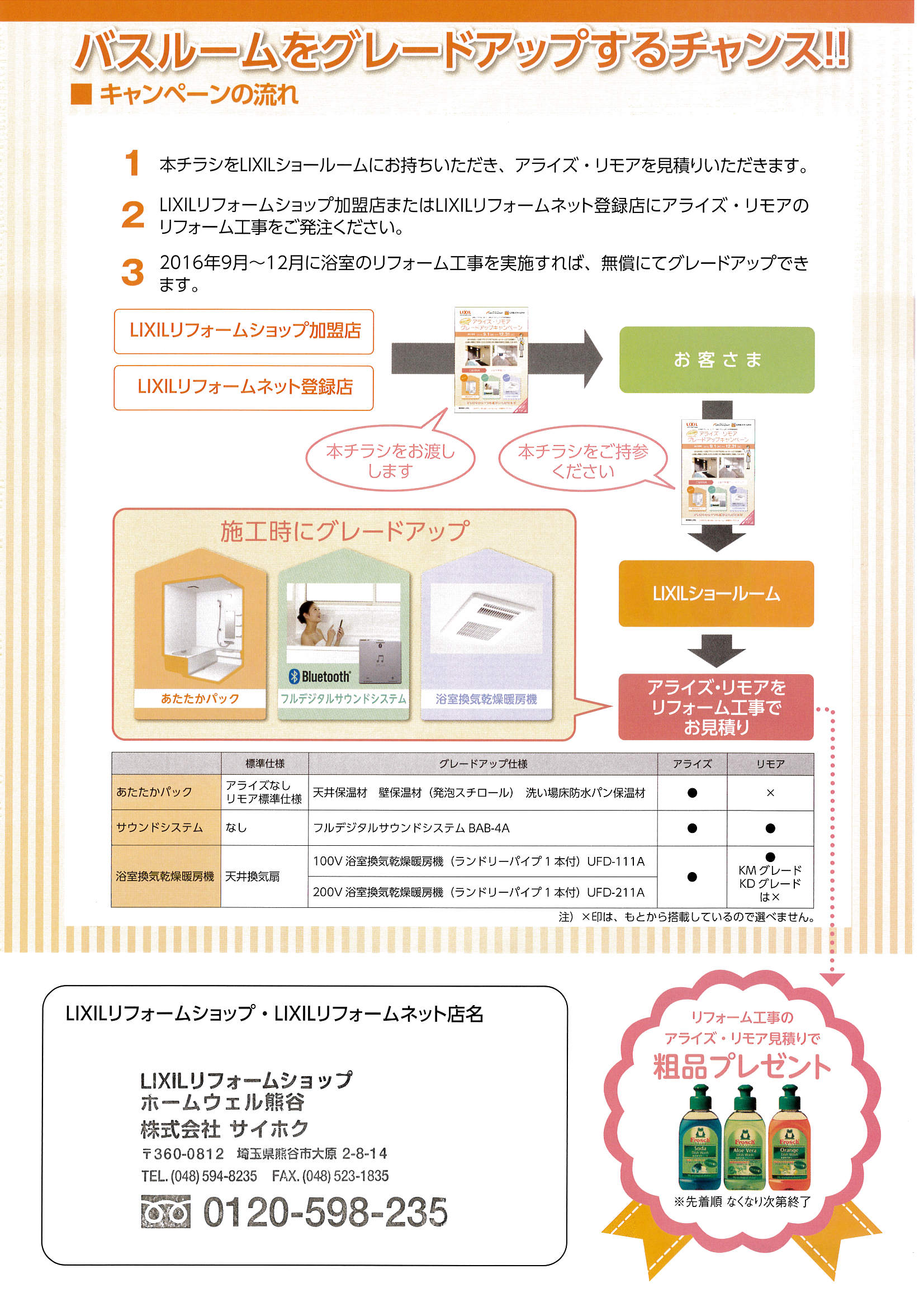 1.グレードアップチラシをLIXILショールームへ持ってアライズ・リモアをお見積り