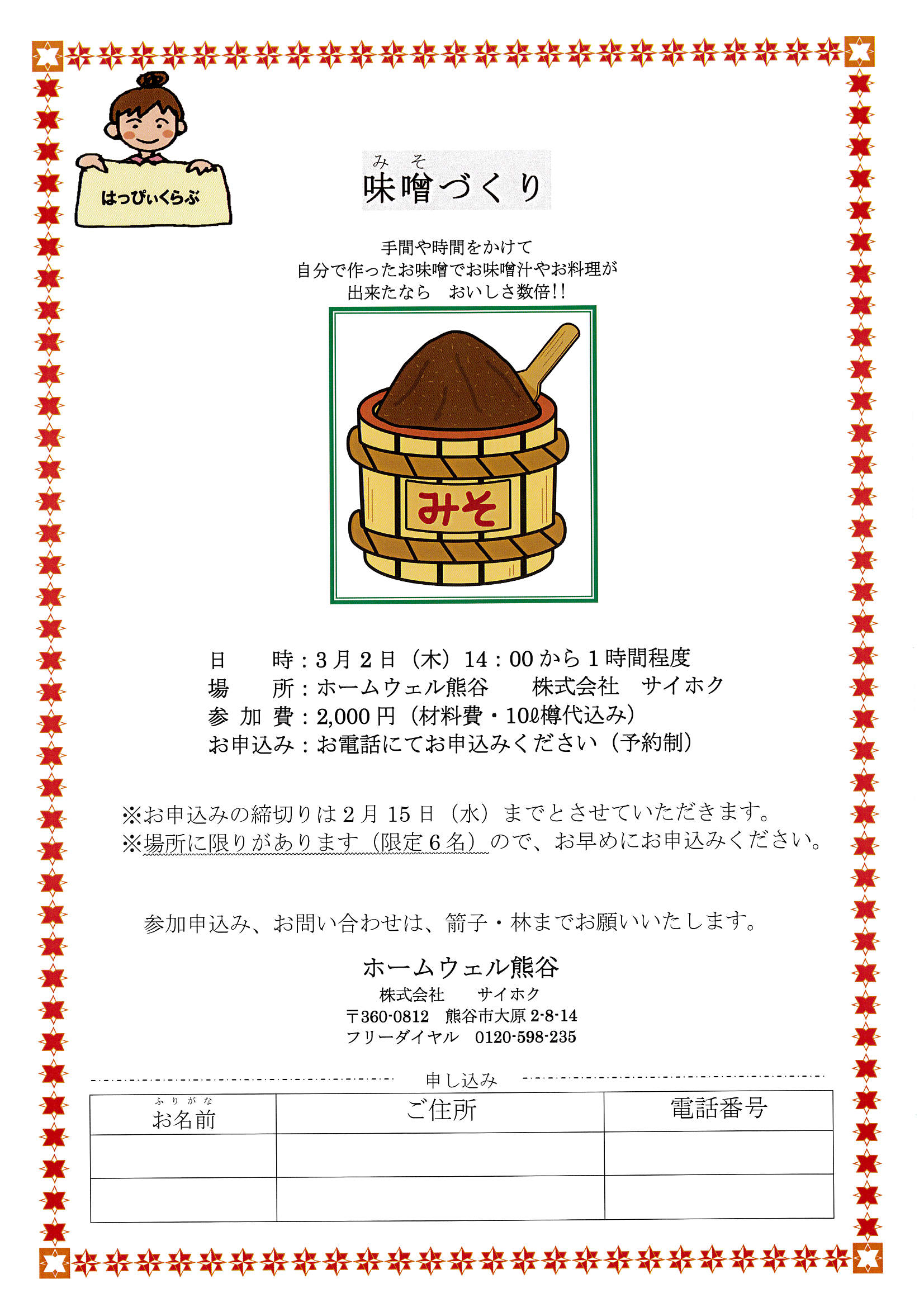 今年も“ はっぴぃくらぶ ”で 味噌づくり をいたします
