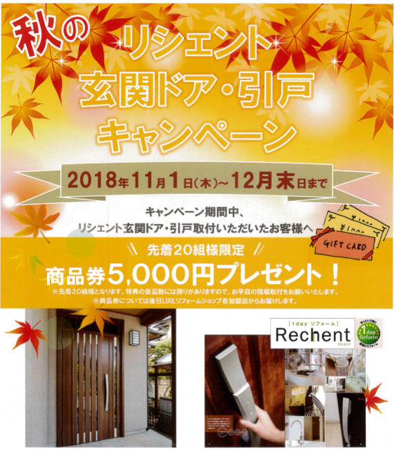 『リシェント』玄関ドア・引戸キャンペーンです!
