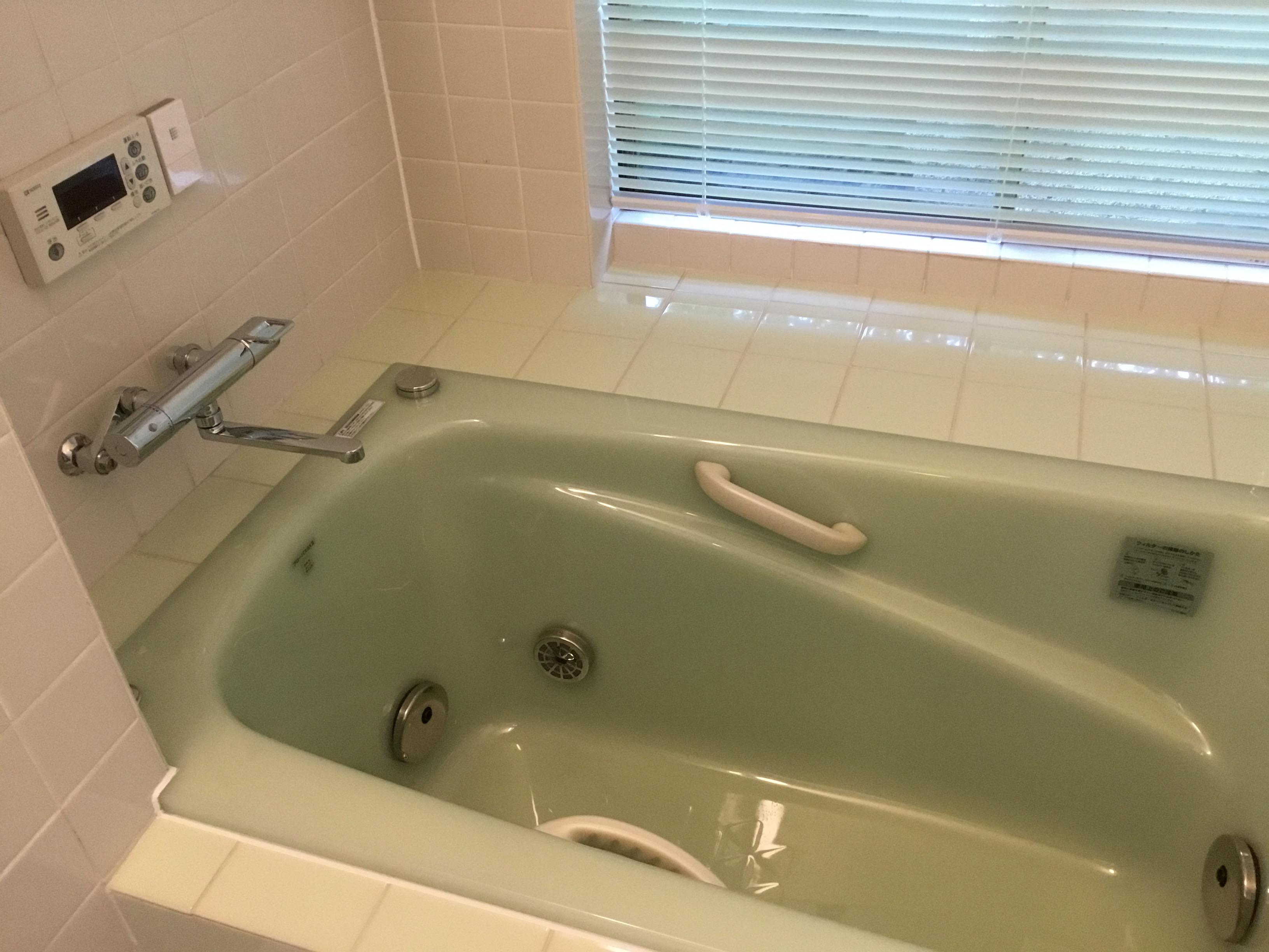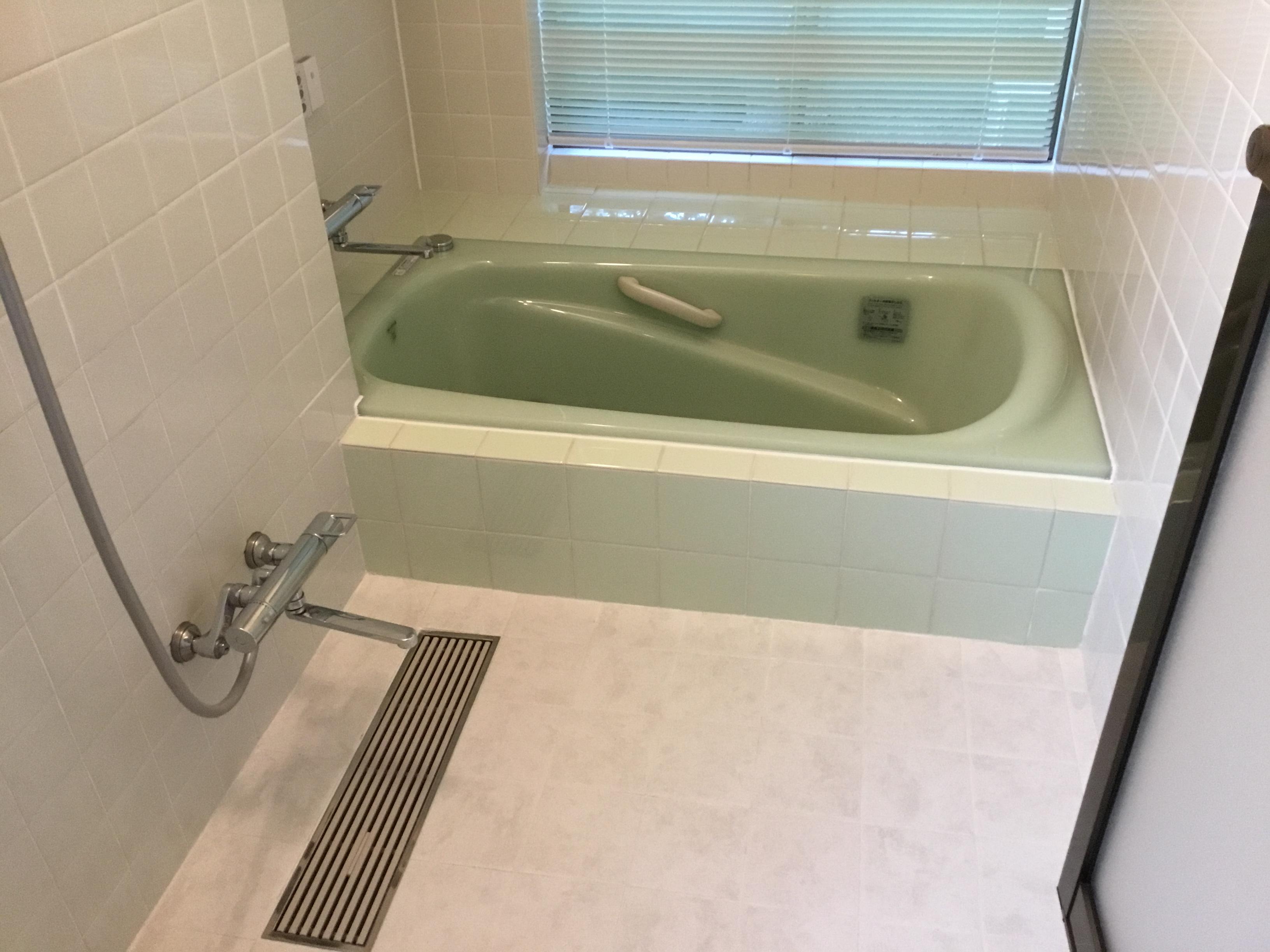 まるでホテルのバスルームのような空間イメージを崩さずワンサイズアップの浴槽を取り入れるのに努力しました。 ホワイトとグリーンを基調とした清潔なイメージのバスルームに仕上がりご主人様のご要望通りに仕上がりました。