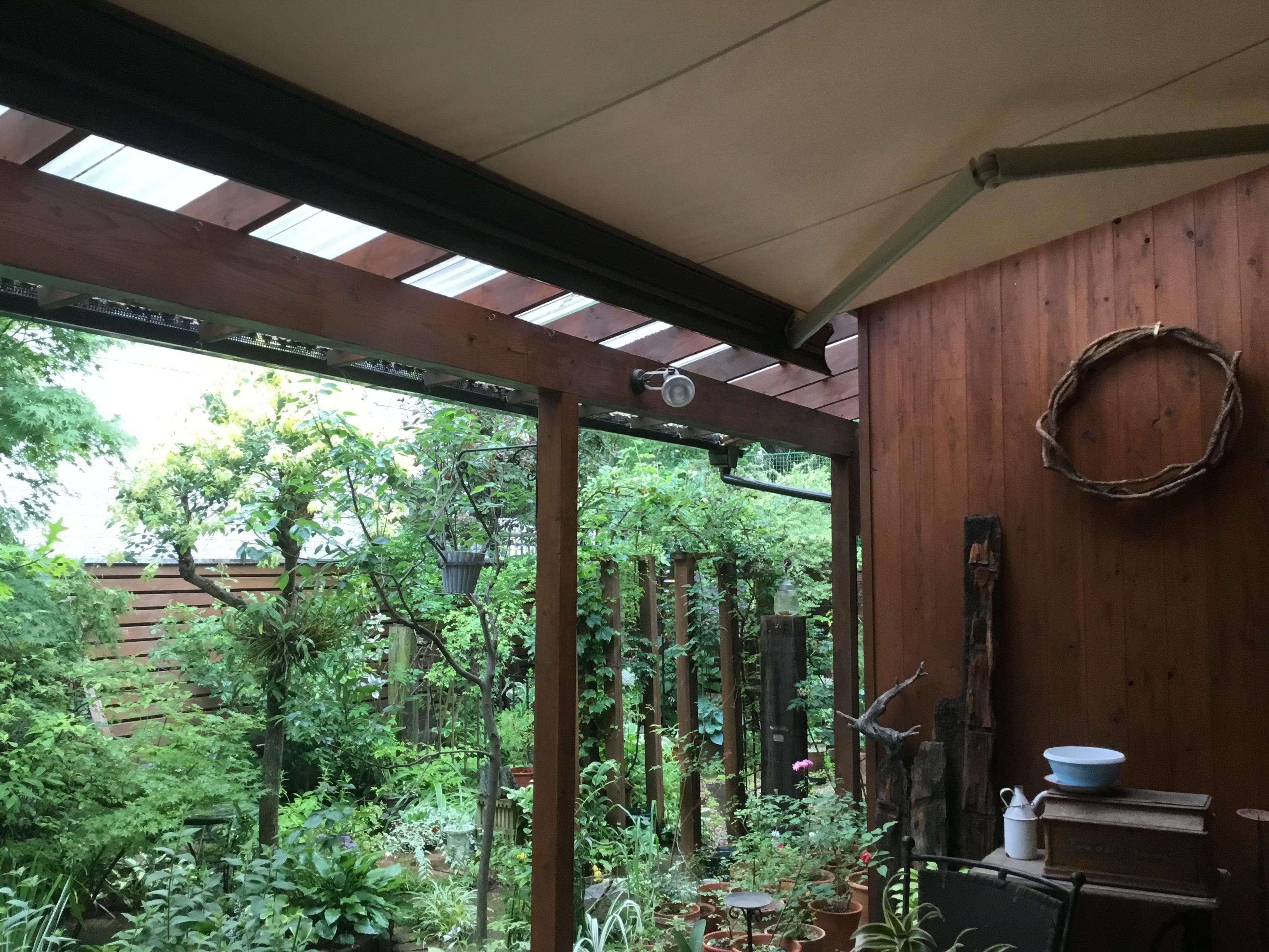 もともとサンルームとしてガーデニングを楽しまれておられましたが、夏場の陽射し対策でオーニングを取り付けました。