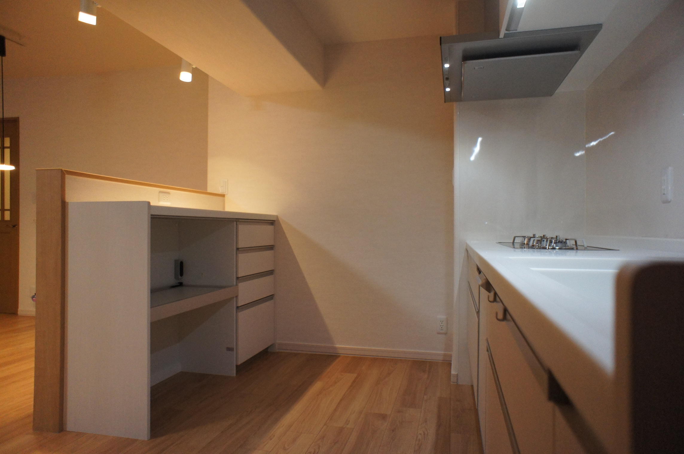 キッチンと並列に配置し、キッチン家電はほぼここに納まります。