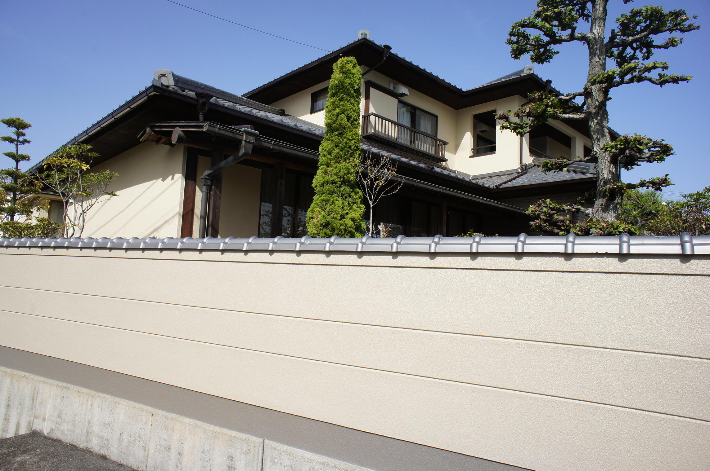 以前から気になっていた外壁や塀を梅雨前に塗装しました。外壁部/キクスイグラストSi吹付No.5610 塀部/日本ペイント パーフェクトトップ艶消し/No.184