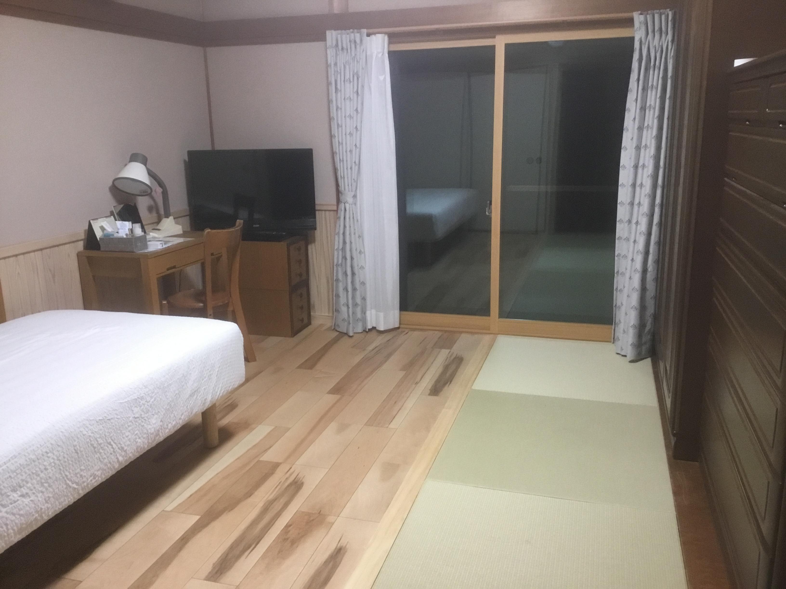 6帖たたみ敷きの和室を一部フローリング張りにしてリフォームしました。以前から冬寒いとのことで内窓インプラスを採用、内障子をとってカーテンを設置しました。