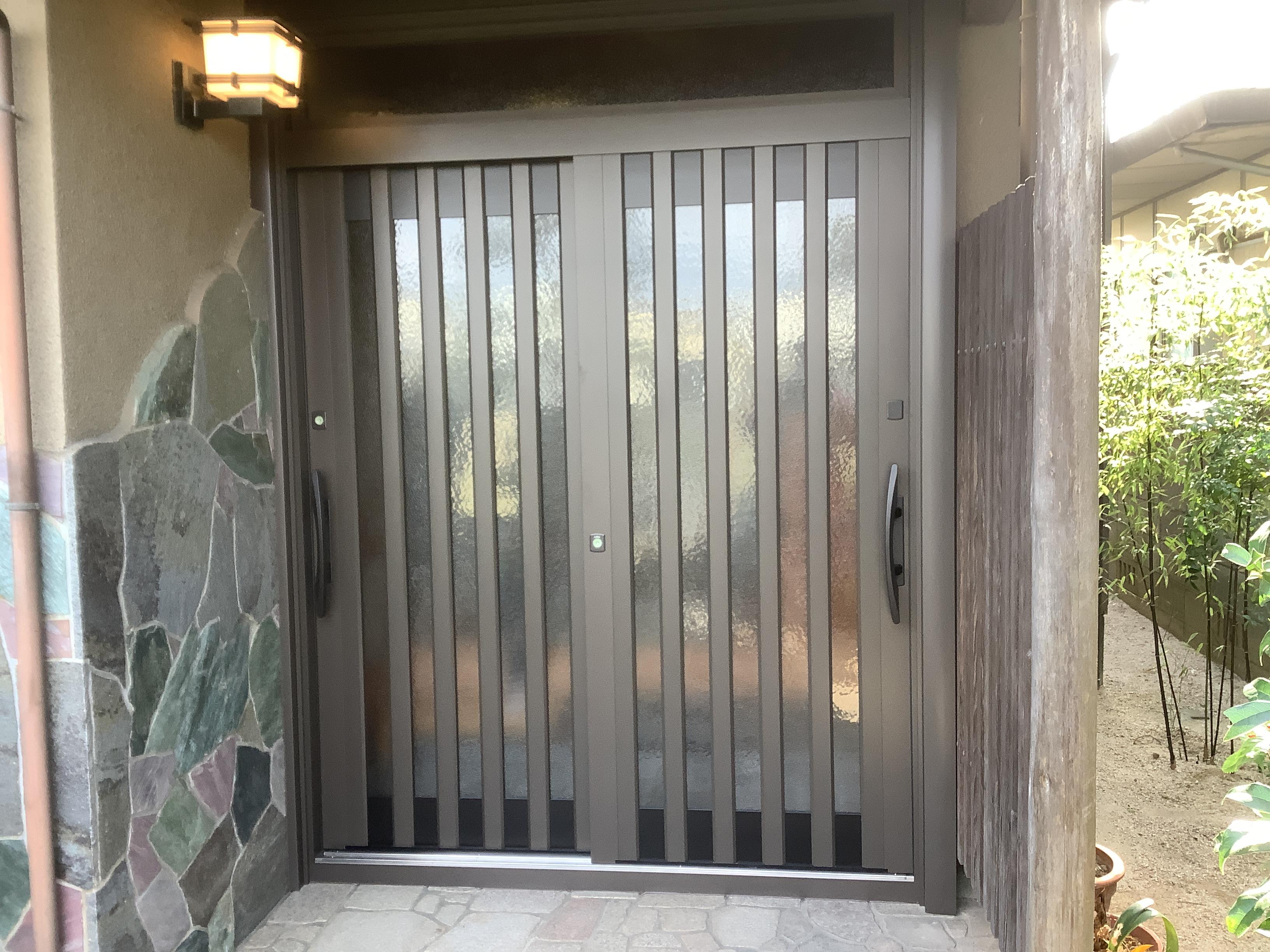 既存引き戸の戸先錠が壊れたことで取替を検討しましたが適合するものがなく、玄関引き戸の取替提案をしました。1日で工事が終わること、防犯性が高まることにメリットを感じていただきご採用になりました。