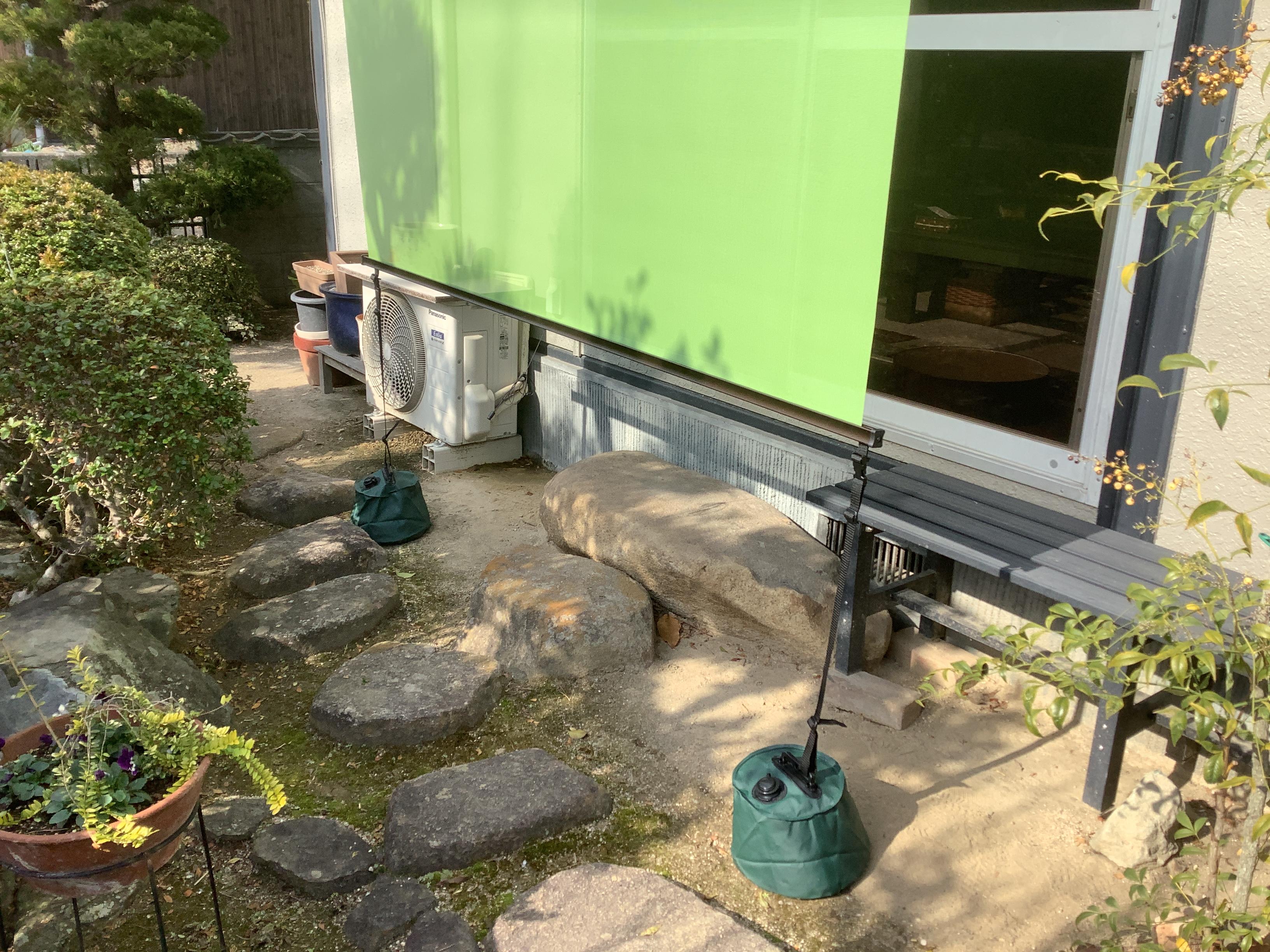 ご紹介により日除け対策とプライバシー確保のため外付けロールスクリーンを取り付けました。 オフシーズンにはボックスに収納できるので長くご利用いただけます。
