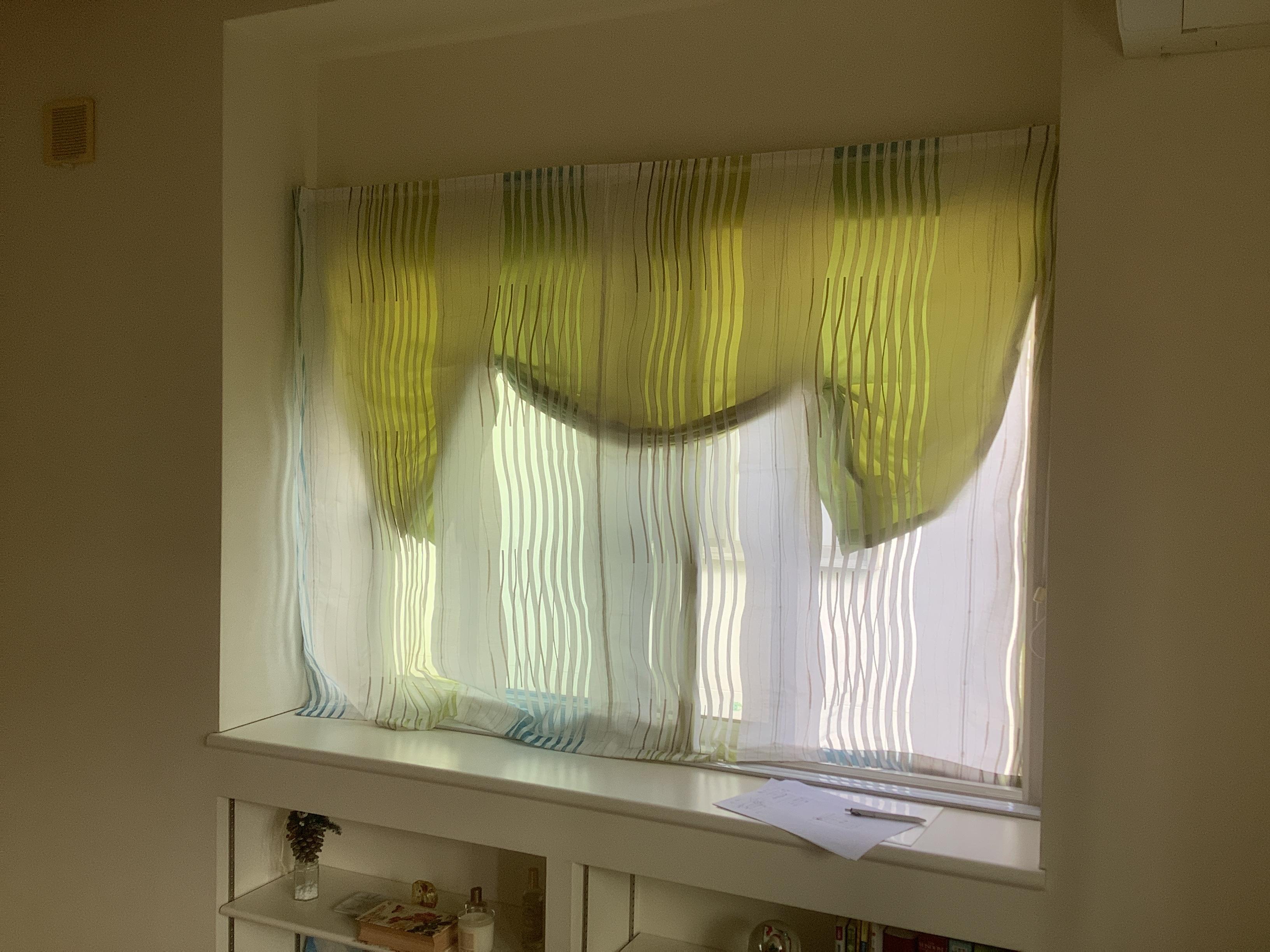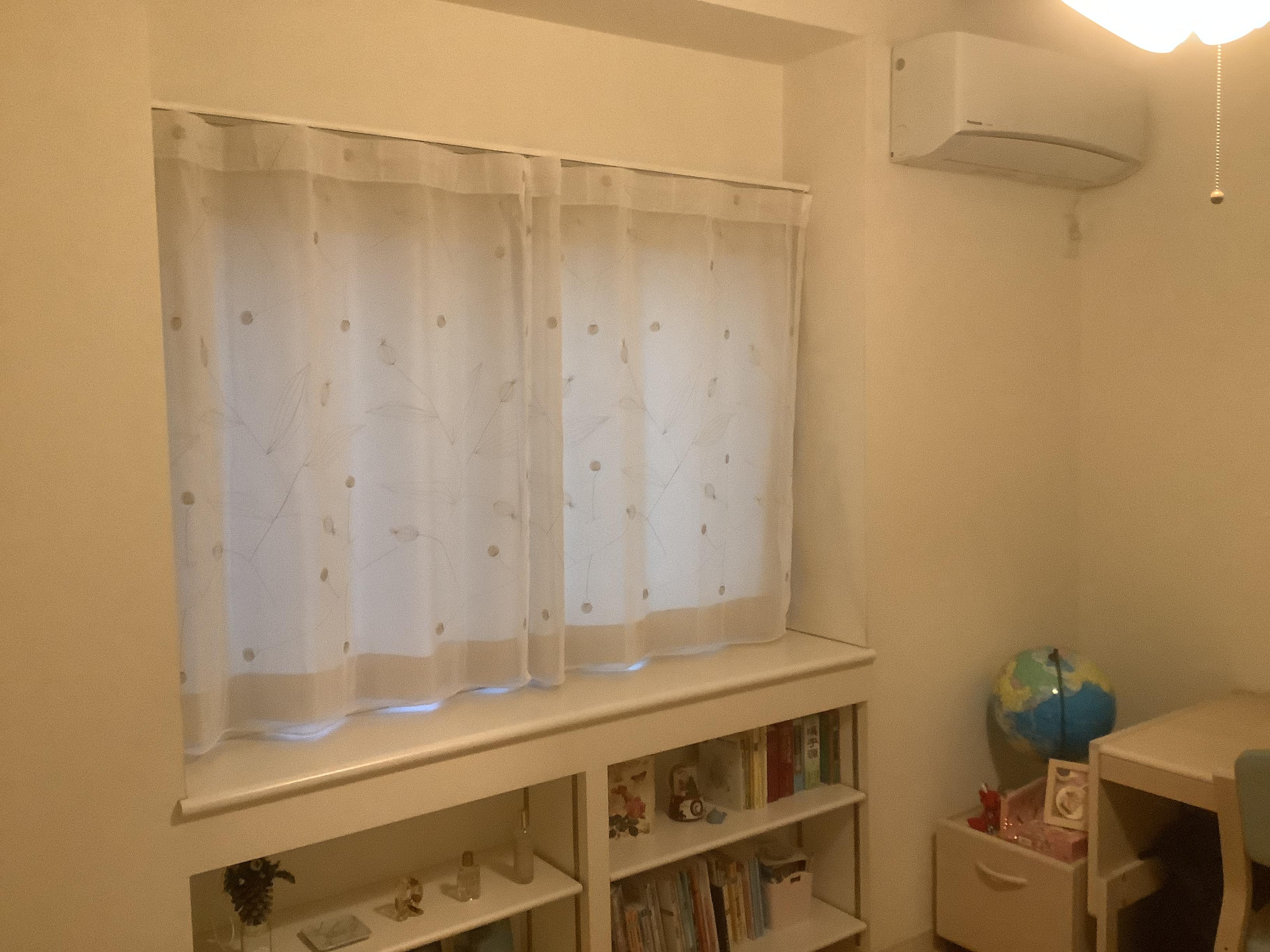 17年前の新築時に設置したツインシェードをカーテンに取替えました。フラットカーテンは軽やかなイメージで仕上がりました。