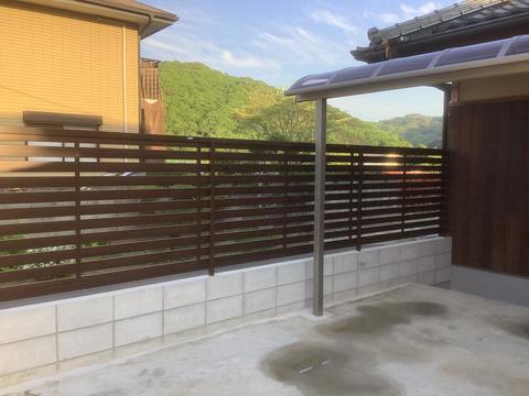 LIXIL・フェンスAA YS2型(木調)クリエダーク(SA)H1200 LIXIL/スピーネR型テラス 600タイプ 施工事例