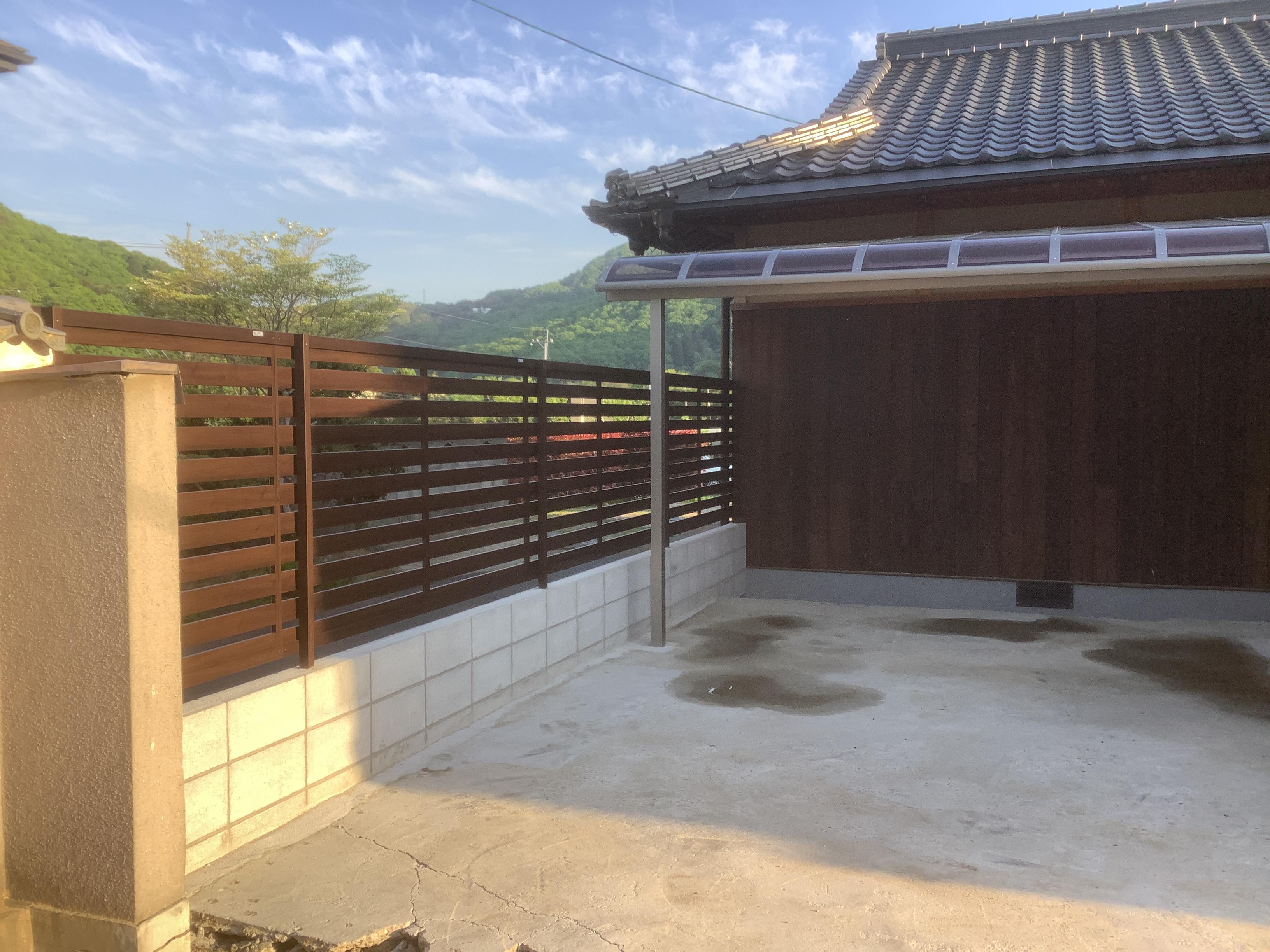 家族の変化にともない蔵を解体撤去、雑草対策で防草シートの施工、境界フェンス テラスの設置を行いました。