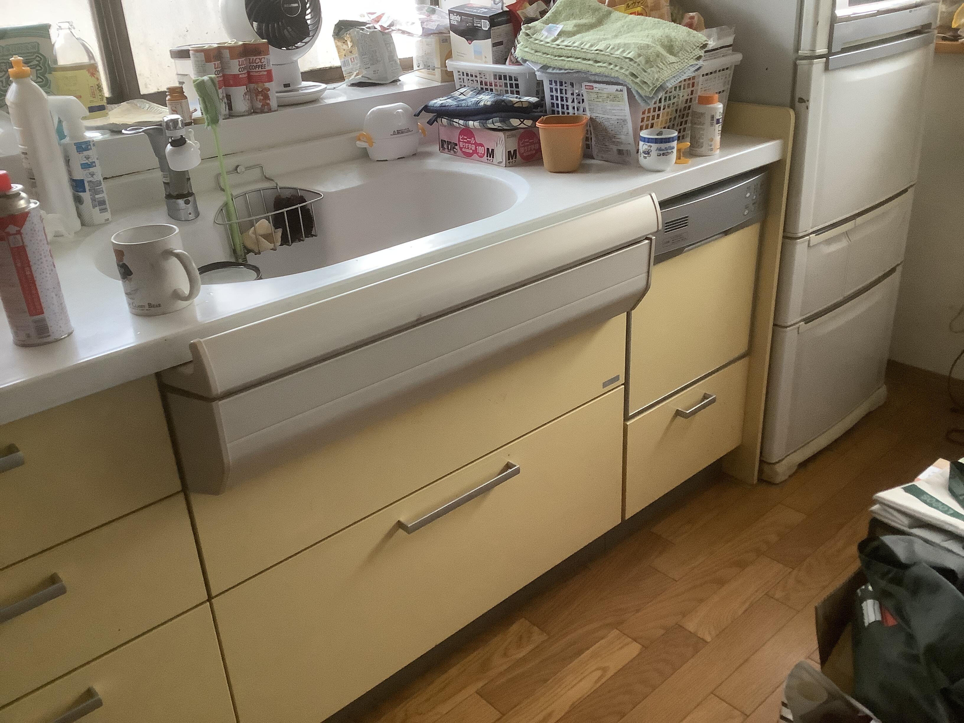 故障してから比較的早く取替ができ良かったです。 新しい食洗機のフロントパネルはグレー色でしたが、化粧シートにより以前と同じイエローにしました。