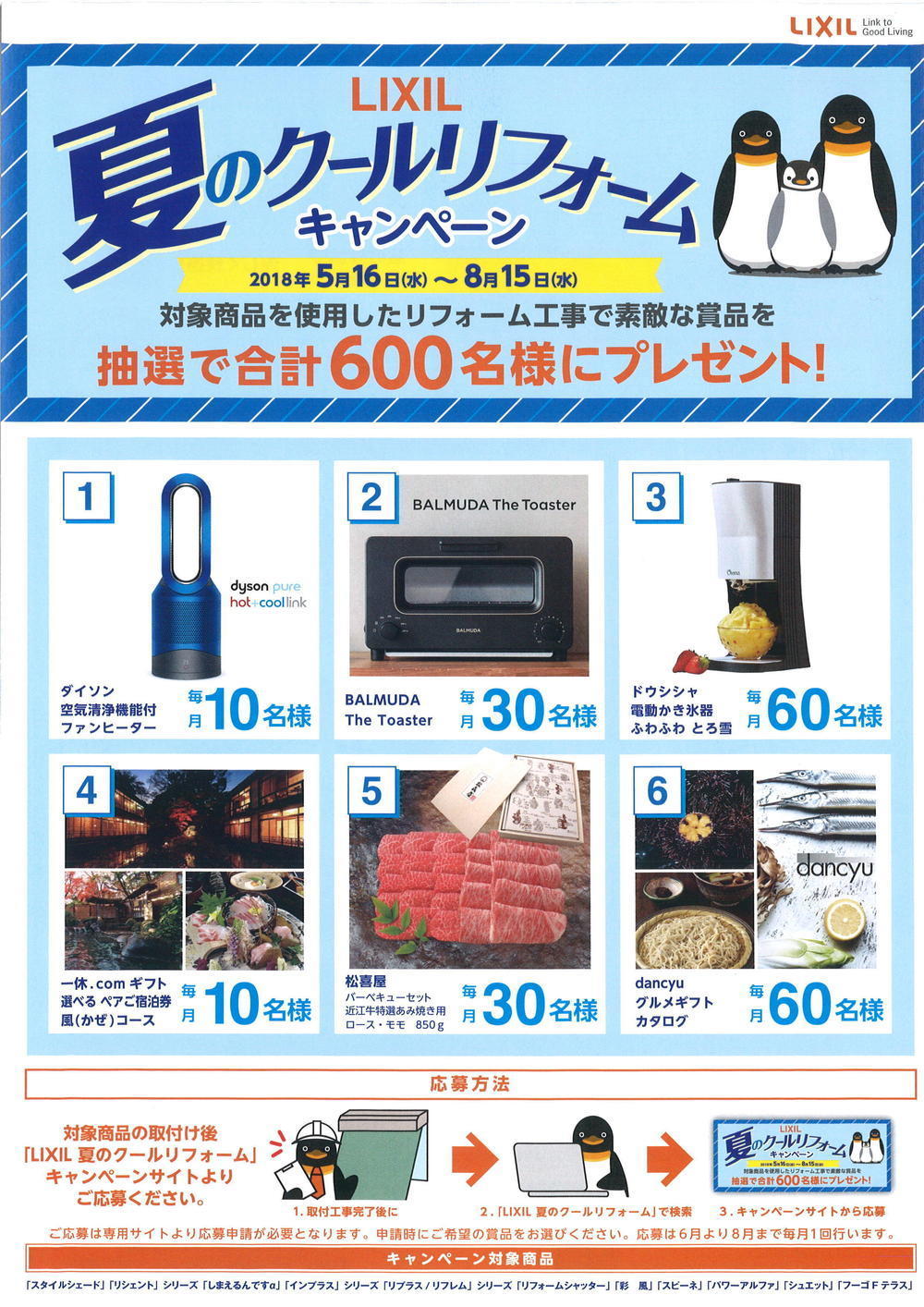 ㈱LIXIL主催の『夏のクールリフォームキャンペーン』を開催中です!!
