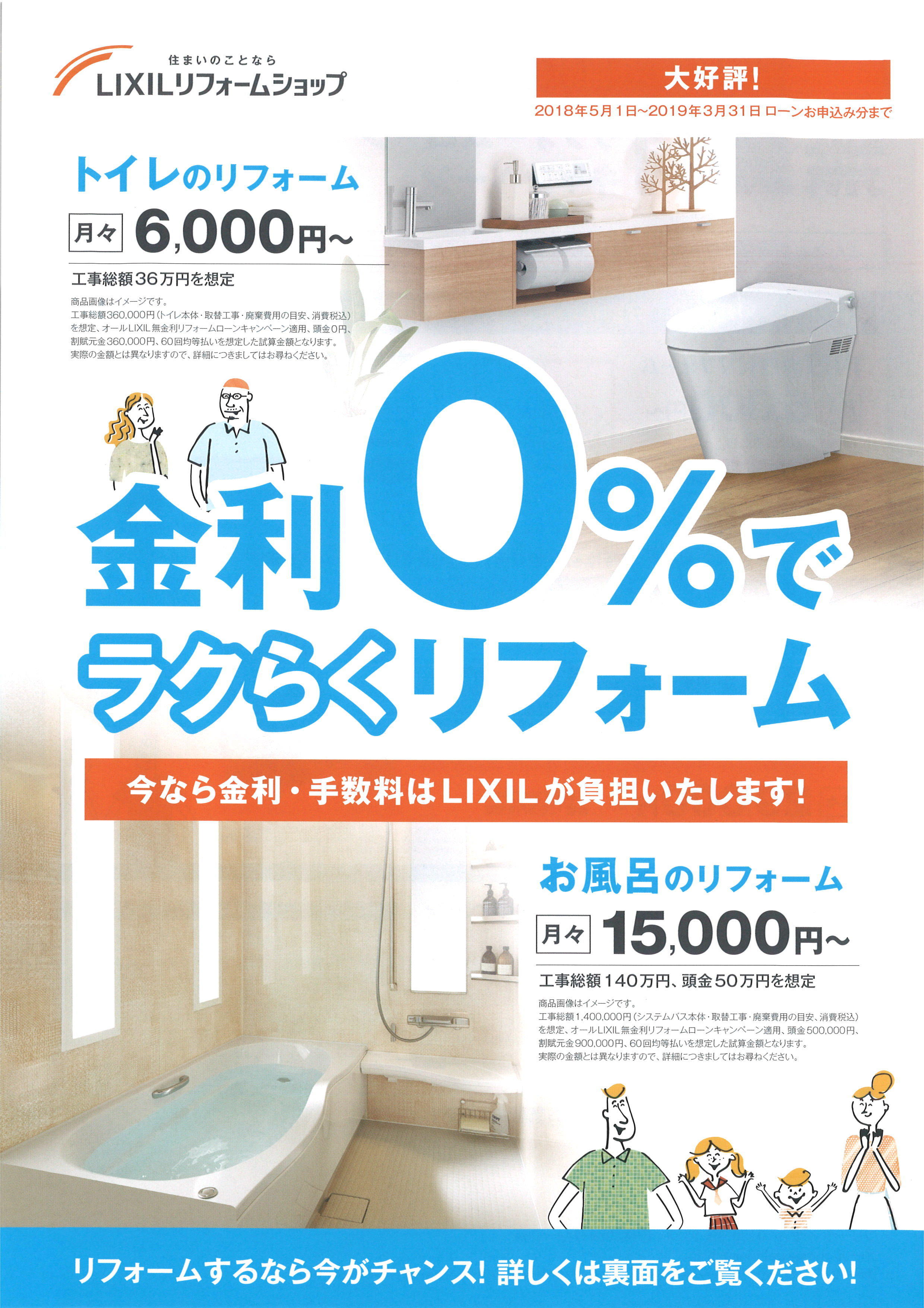 オールLIXIL『無金利リフォームローンキャンペーン』開催中!!