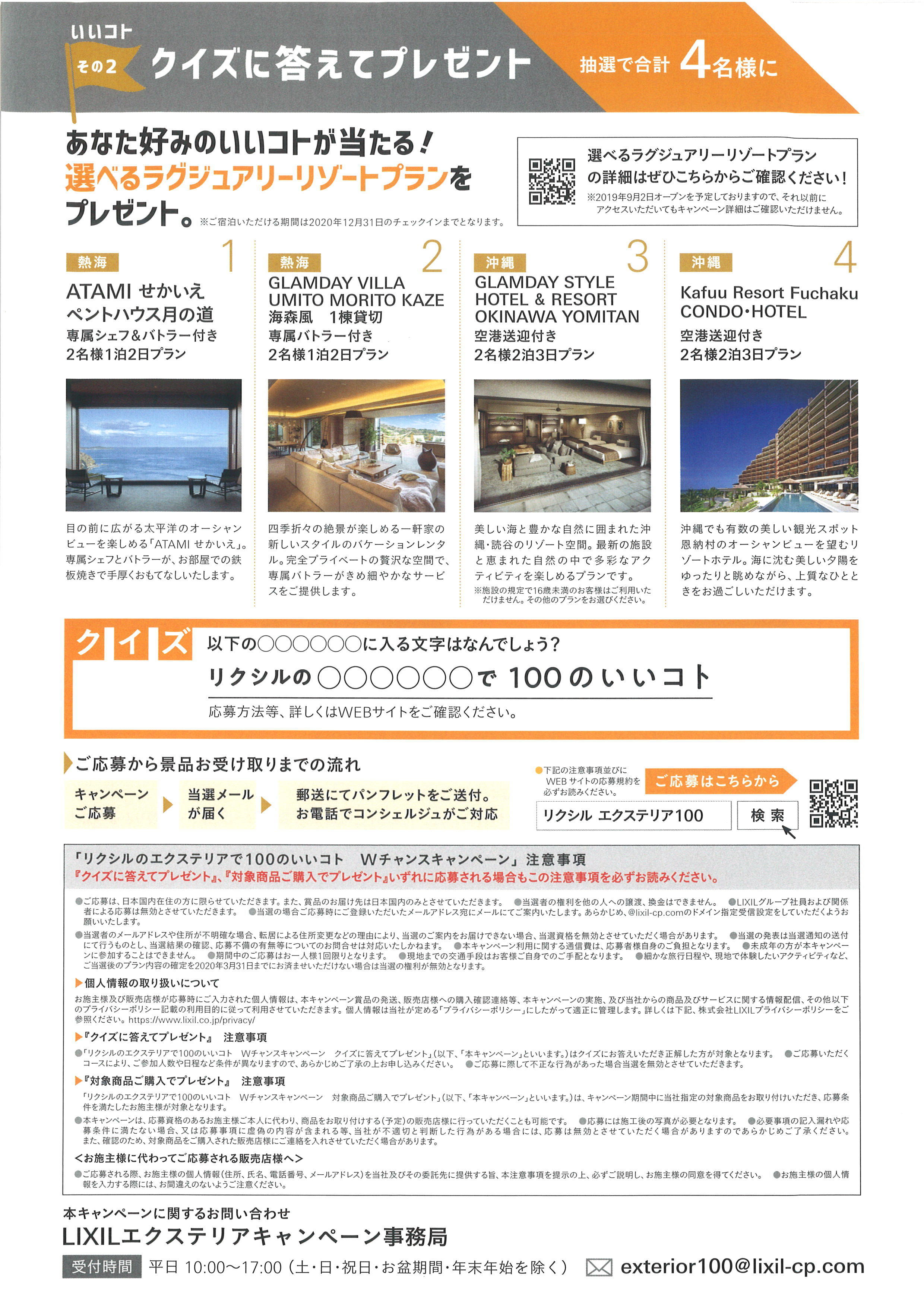 *詳細は、添付のチラシまたは、サイト『リクシル エクステリア100』で検索下さい。