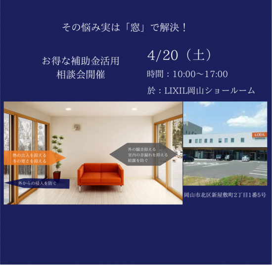 場所は LIXIL岡山ショールーム 岡山市北区新屋敷2-1-5