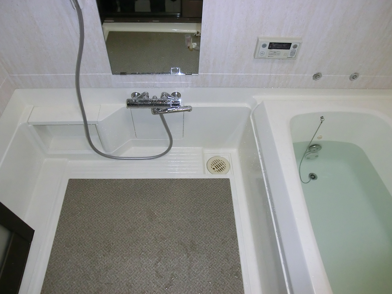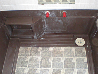 以前他のお客様のところで部分的な別々の工事を施工したので、それぞれの良いところを足し算してみました。(壁パネルに特殊シート貼り)+(浴槽と洗い場の特殊塗装と滑り止めシート貼り)=(安くてきれいなユニットバスへのお化粧)という公式ができました。