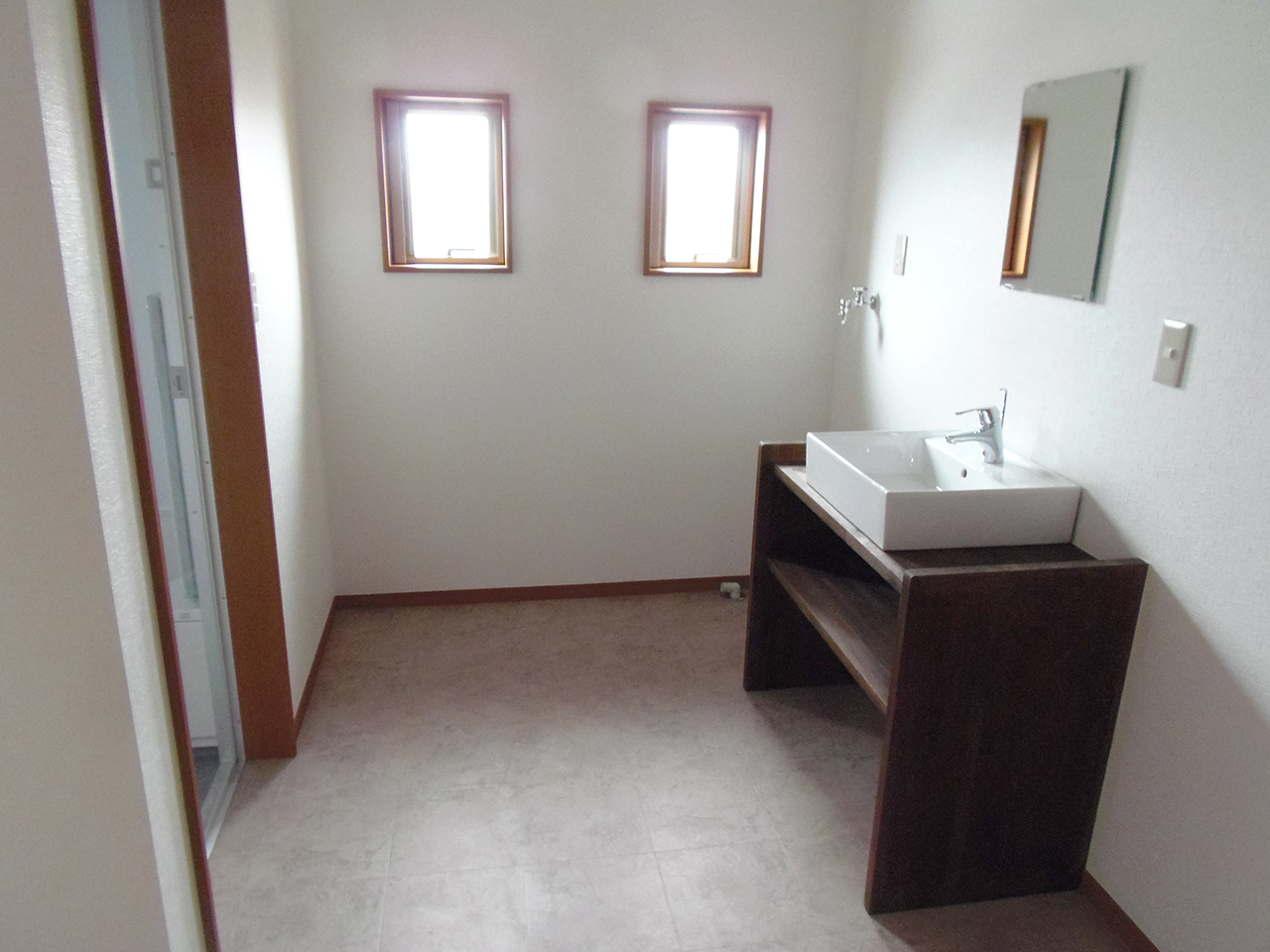 洗面室にトイレがありましたがトイレを別に設け、部屋干しのできる広い洗面室に改修。