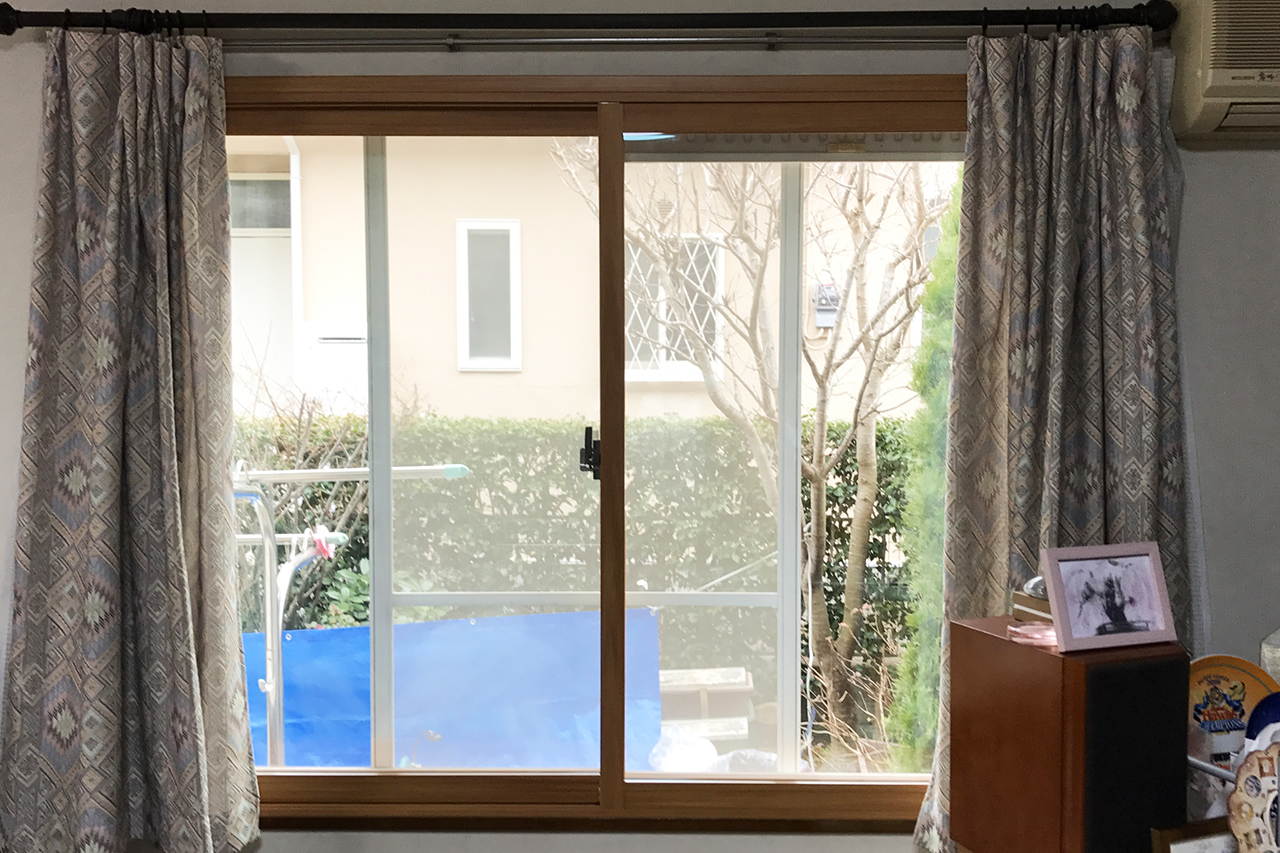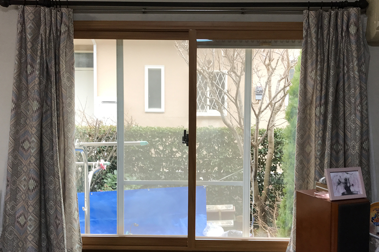 リビングの窓にインプラスを設置。冷気侵入を低減させます。