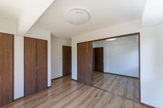 クローゼットのあるところは以前廊下でした。廊下を取り込んで大きなクローゼットを設けたので、余計な家具が不要になり部屋もスッキリします。引き戸を開ければ二間続きの広い洋室になり、手前の洋室には玄関ホールから直接入れる扉も設けています。