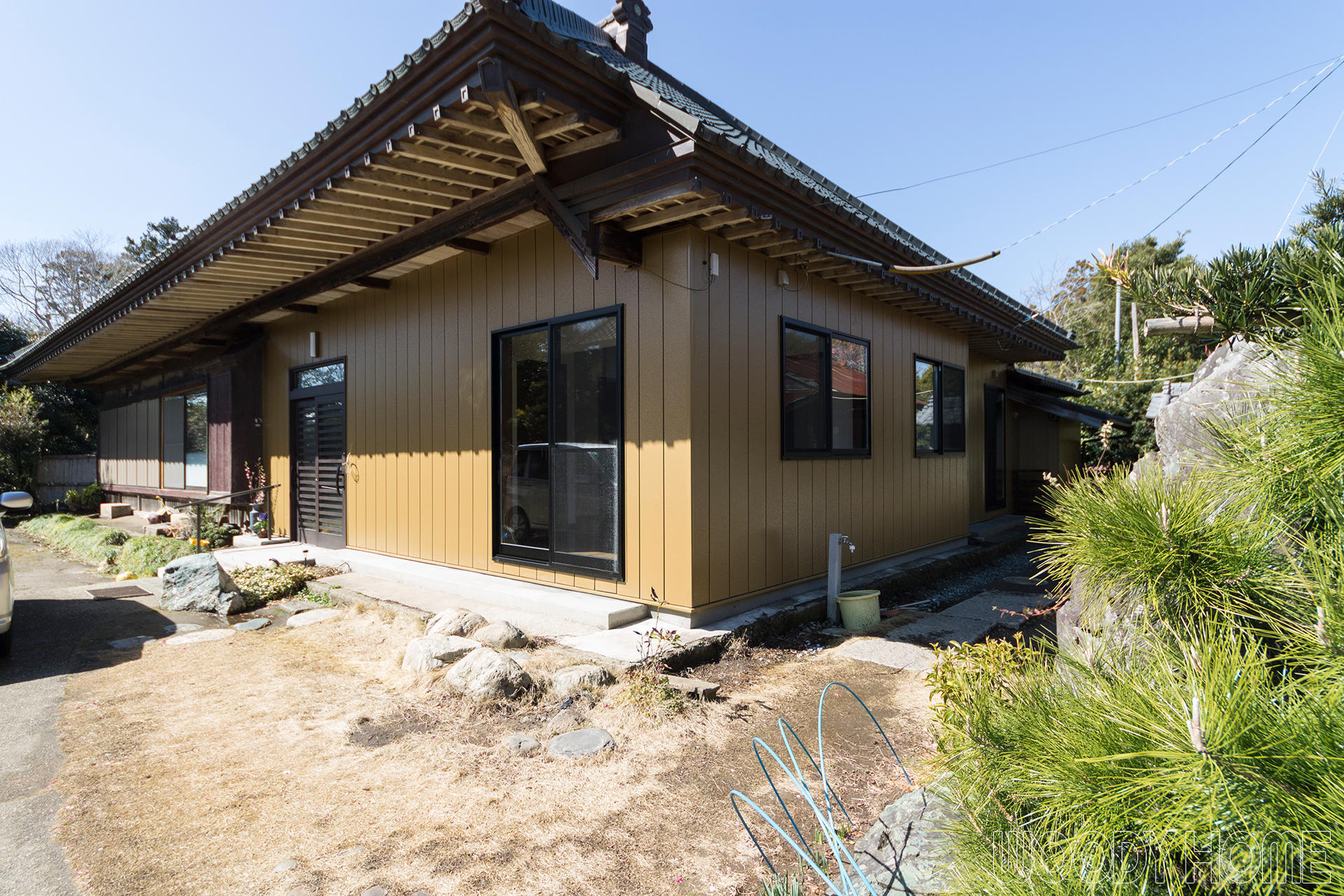 外壁、改修部はスタッコ調の金属サイディングに張替えました。