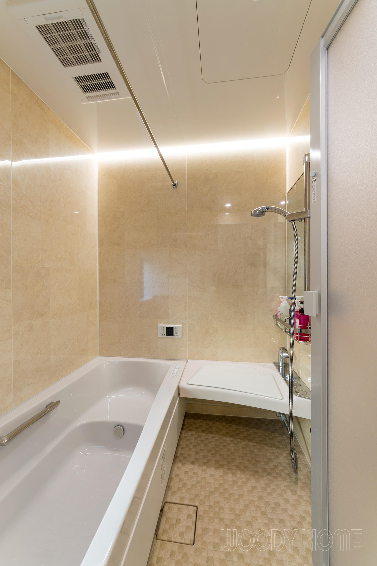 今回のリフォームで入れたユニットバスはLIXIL「スパージュ」です。アクアフィール(肩湯)を設置しています、癒しのバスタイムを満喫してください。