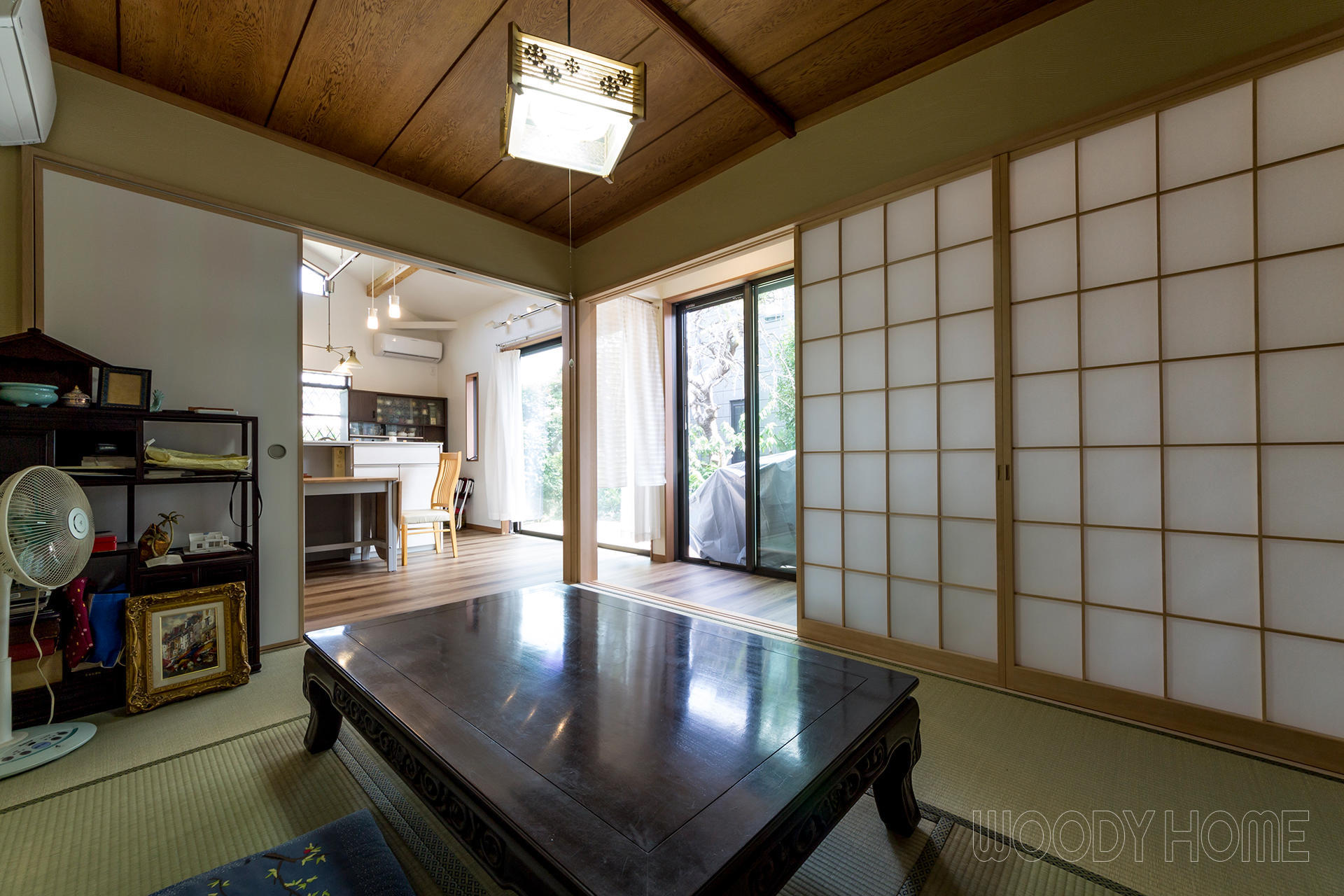 思い入れのある6帖の和室は間取りを変えず、LDKと増築した書斎コーナーとの行き来がスムースになる様にしました。