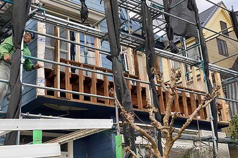 腐朽したものは使えませんので、ベランダの骨組みを組み直します。