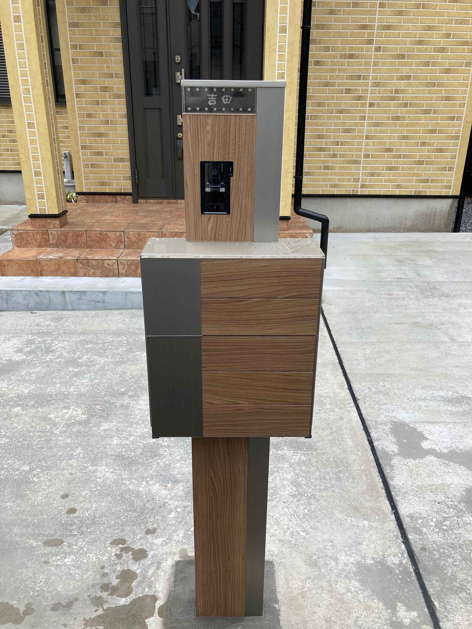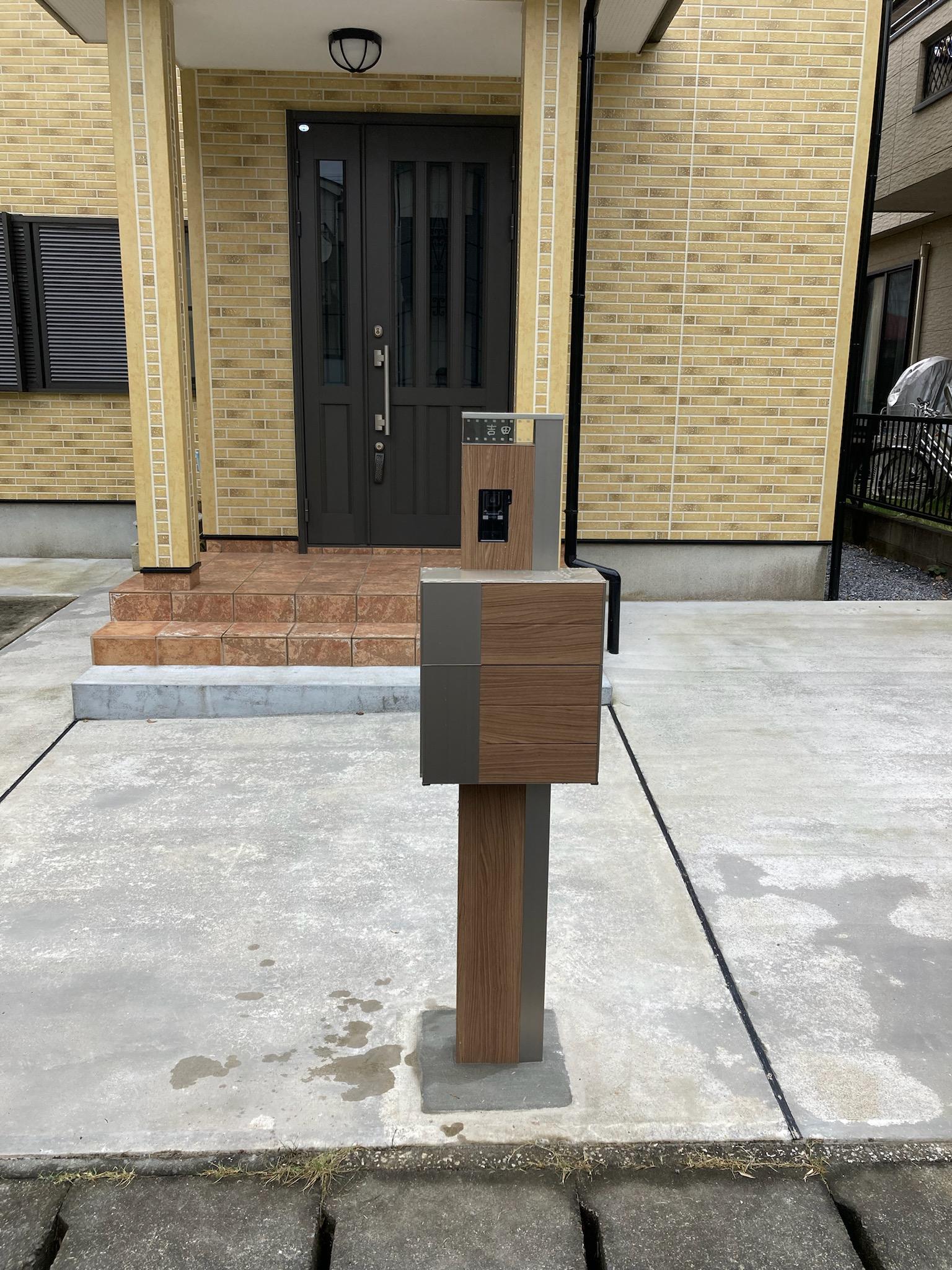 機能門柱の新設と駐車場土間工事をご依頼頂きまして、誠に有り難うございます。玄関前に広いスペースを有効活用しメンテナンスフリーで、駐車スペースとして有効にご活用頂けるものになりました。スリムな外観が美しいファンクションポストユニットには、必要な機能が備わっており、快適にご使用頂けるものに仕上がりました。