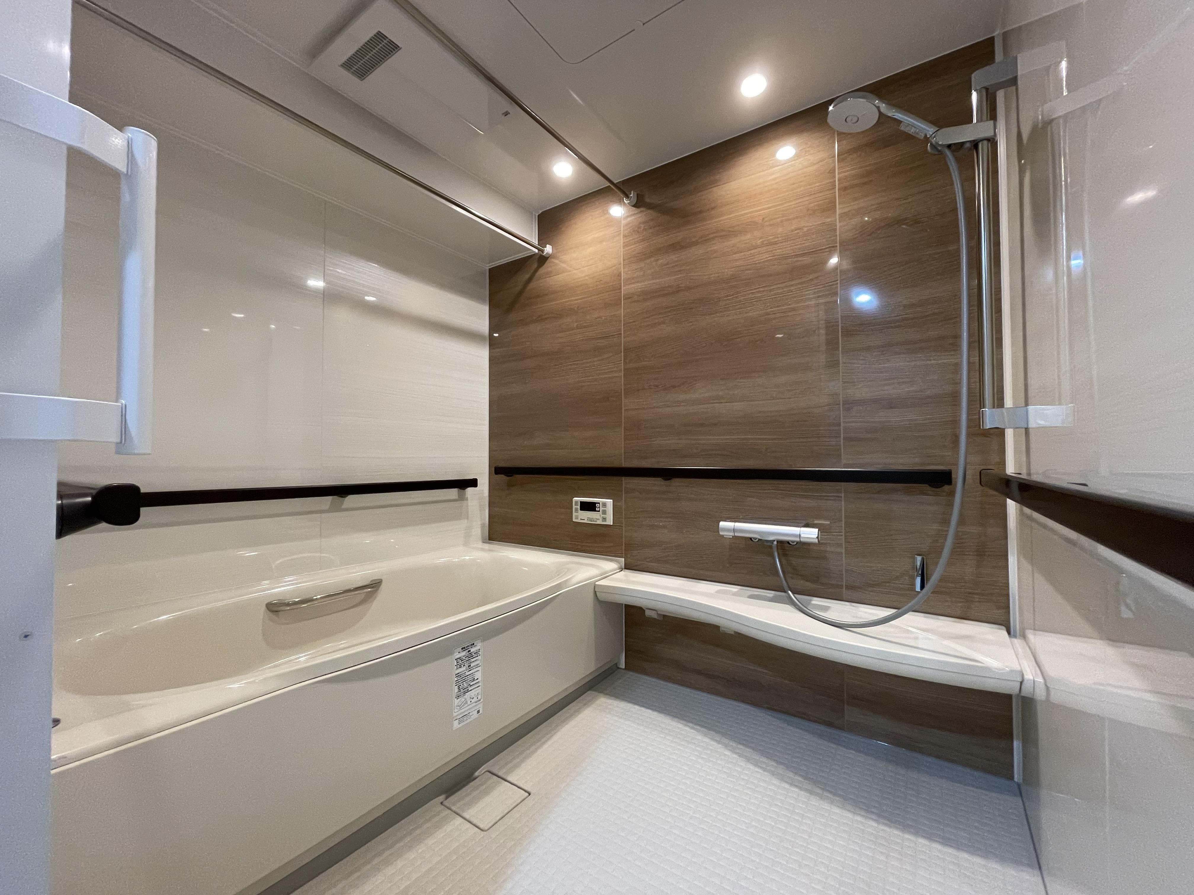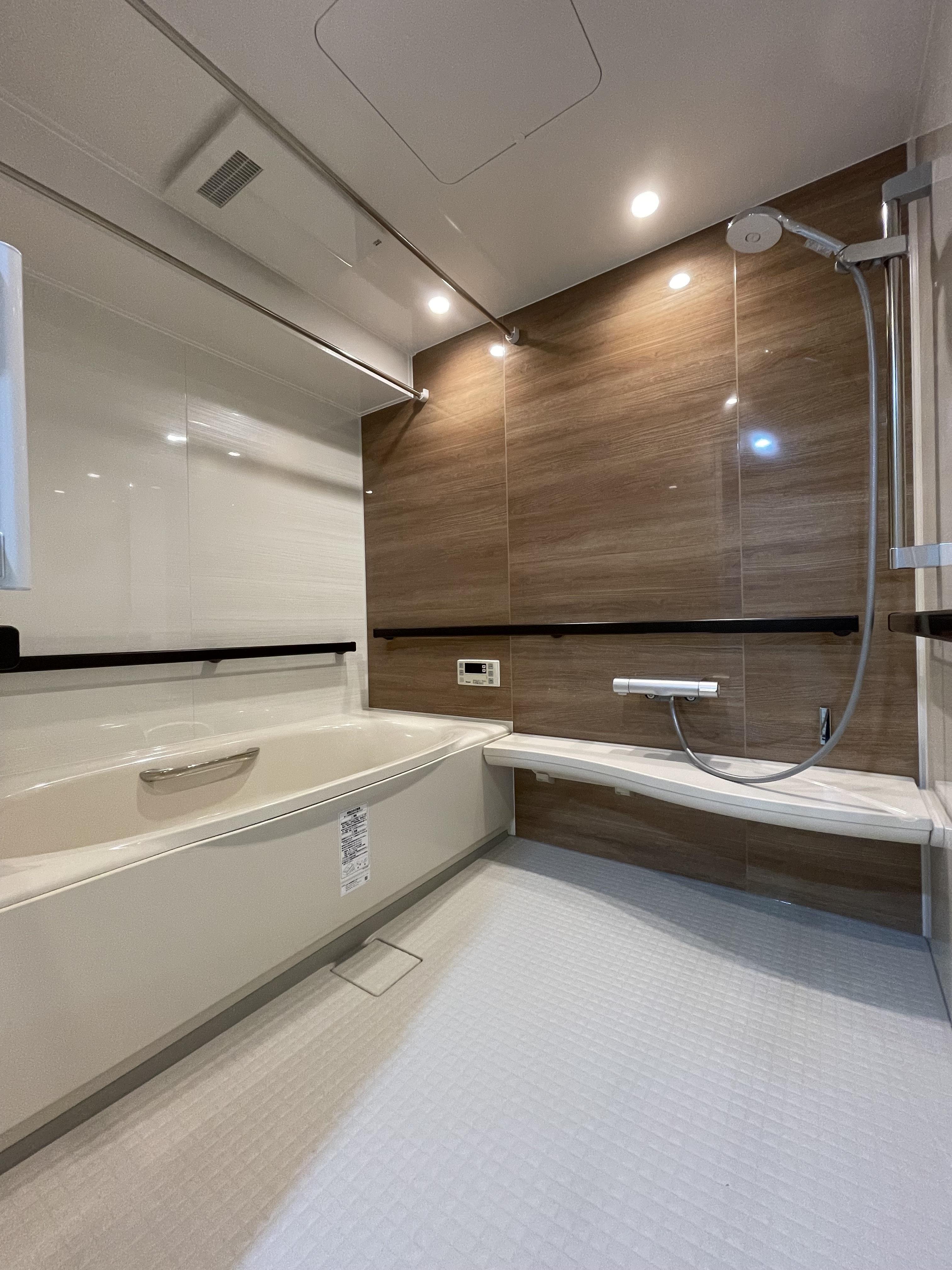 お掃除が大変になってきたのでお風呂を新しくして、将来の事を考えて温かく、手すりなどで安全性も上げたいご要望でした。