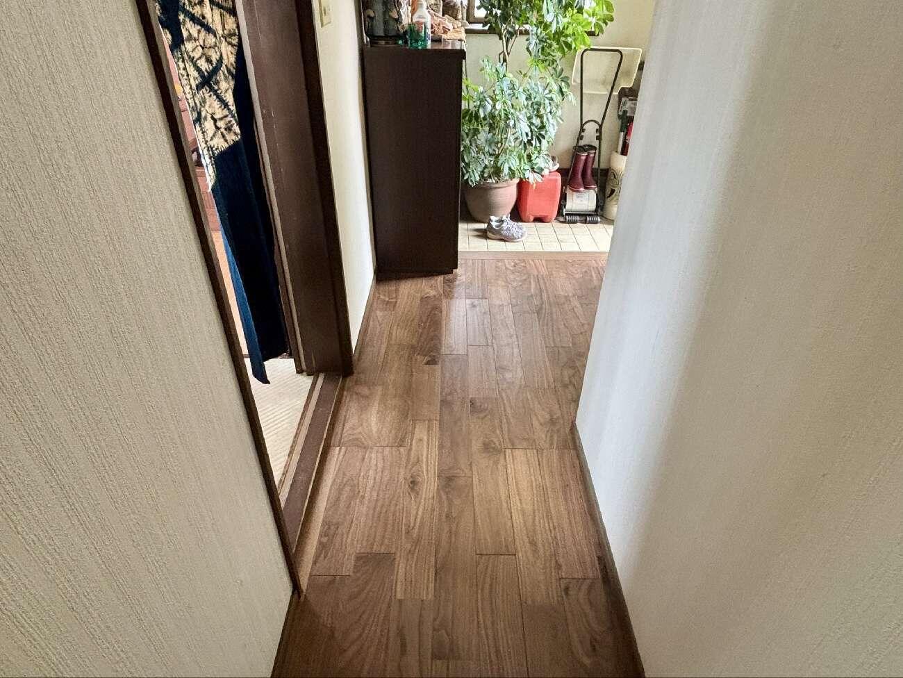 現地調査の結果、下地に大きな損傷はなかったため、既存のフローリングの上から新しいフローリングを上張りする工法を採用しました。