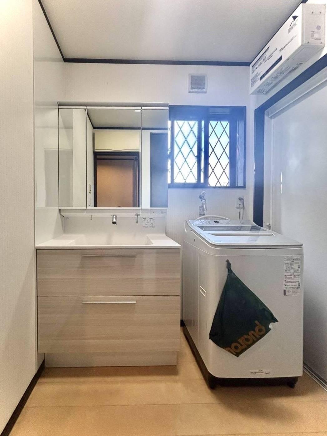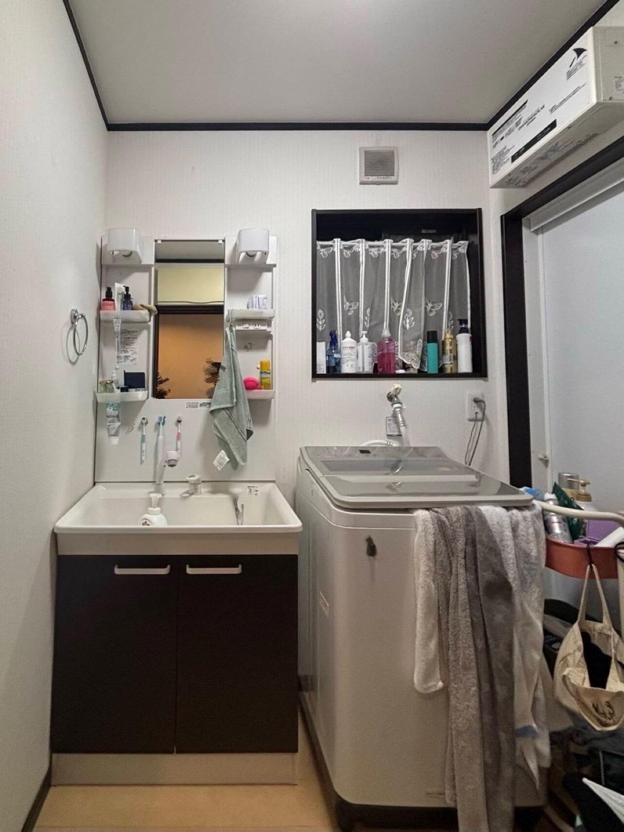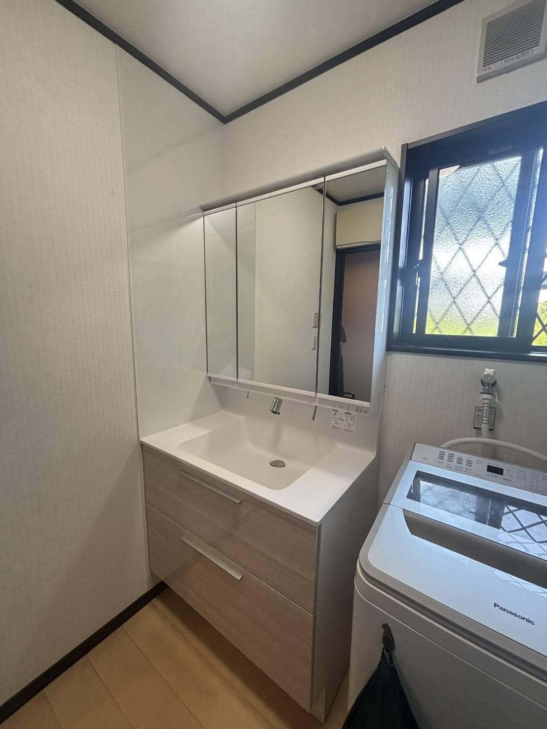 戸建て住宅の洗面脱衣室にて、洗面化粧台の交換工事を行いました。