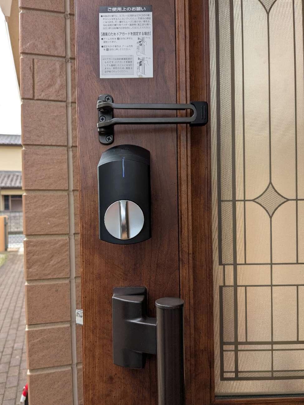 千葉県 H様邸 サディオロック2 スマホを利用して、施錠・解錠。 近づくだけでカギが開くハンズフリー解錠やしめ忘れを防ぐオートロック、合カギのシェアなど、アプリひとつで行える多彩な機能を搭載。 スマホを日頃つかわないご家族には、専用リモコンキーもご用意。 両面テープで固定するタイプが多い中、専用プレートを使い固定するので、安心感が高まります。