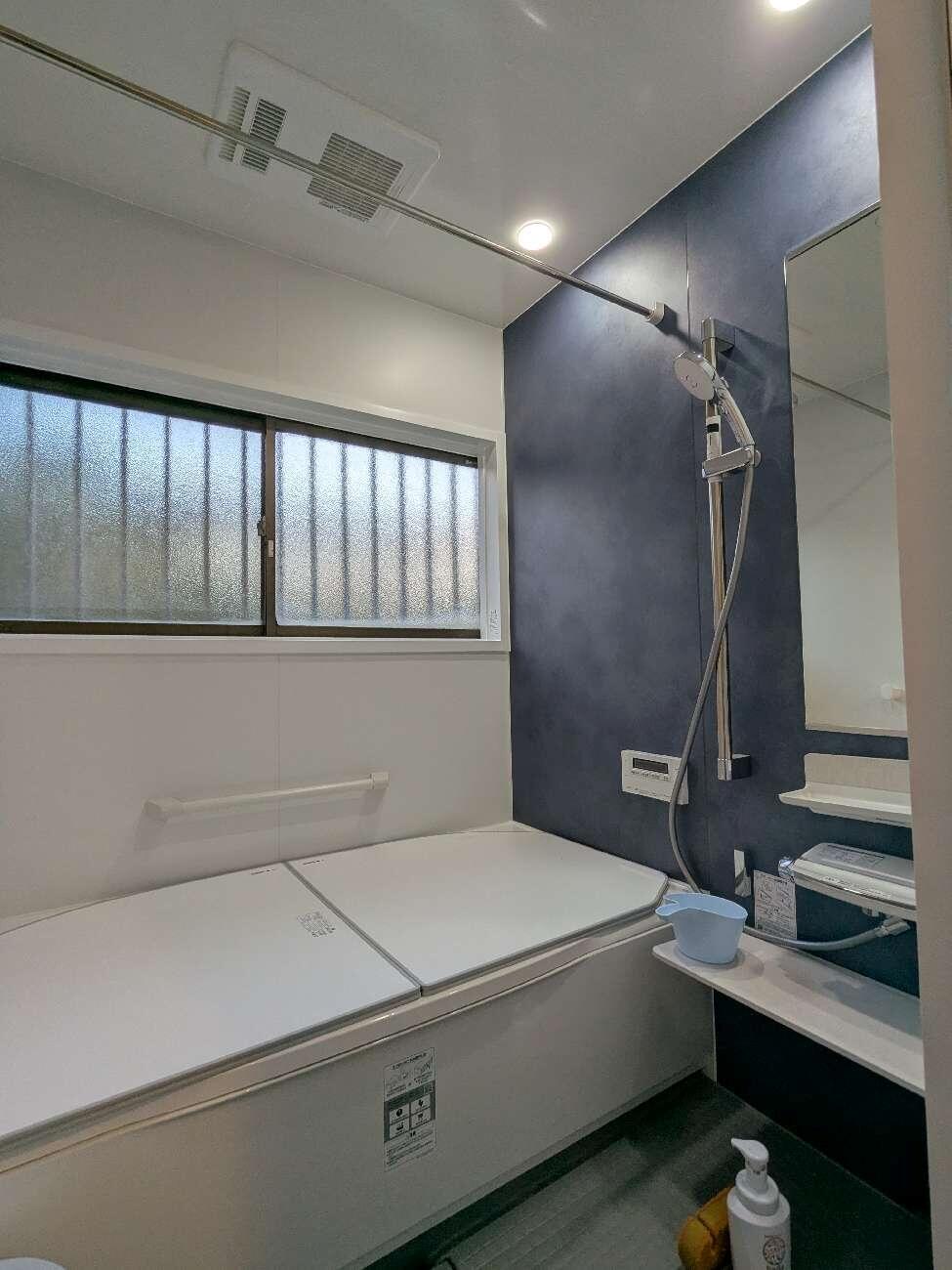 在来浴室の寒さを解消する為にユニットバスへのリフォーム。 LIXILリデア キレイサーモフロアは、足裏から逃げる熱を少なくして、冷たさを感じにくくなりました。浴室換気乾燥暖房機の設置で浴室内を温めてからの入浴が可能になりました。更に内窓インプラスを設置し暖かさキープ!