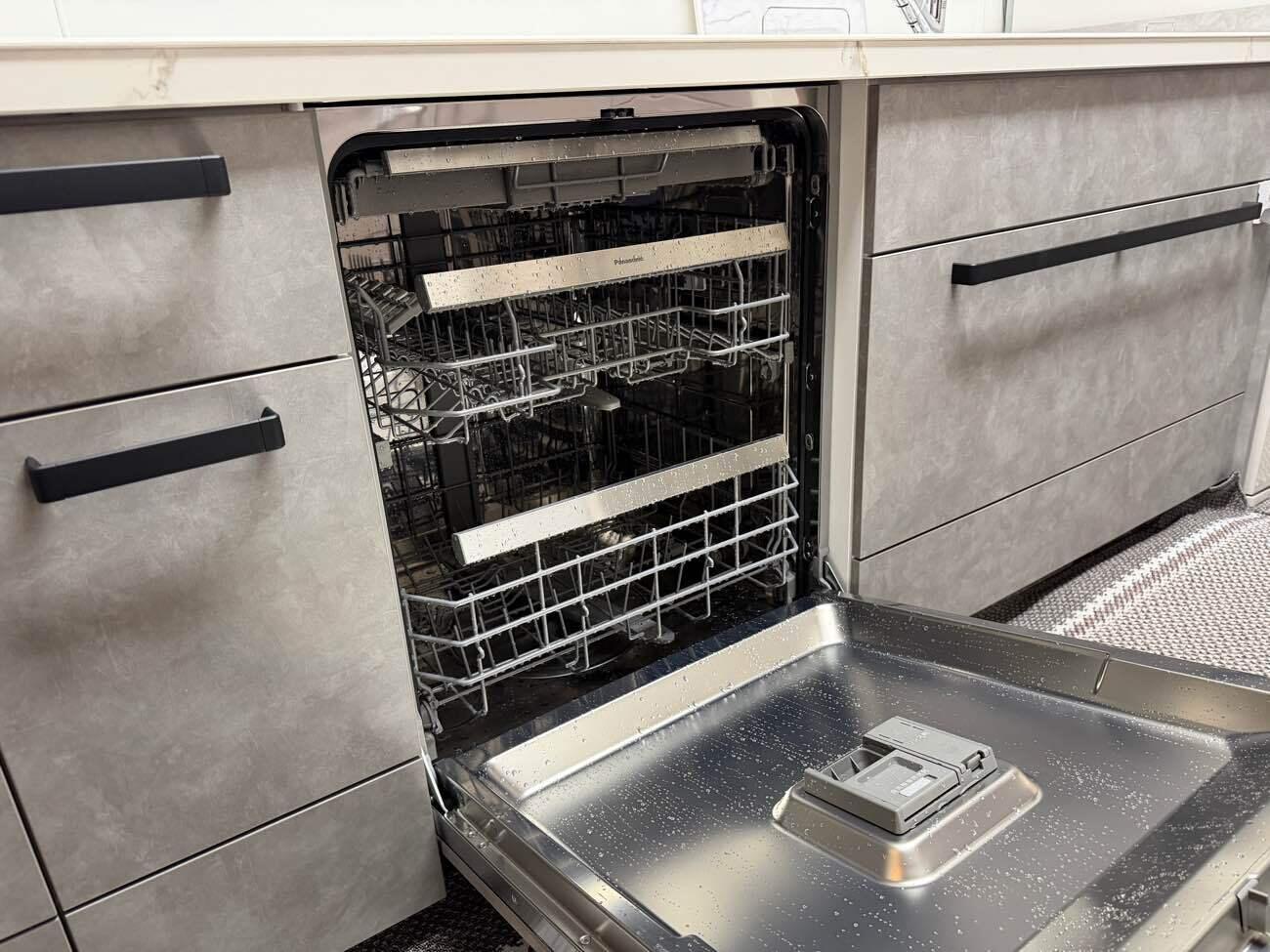 既設の食洗機が故障したことをきっかけに、キッチンリフォームをご検討いただきました。部分交換も可能でしたが、今後の使い勝手やデザイン性を考え、LIXIL「リシェルSI」へ本体ごと交換。レイアウトはそのままに工事範囲を最小限に抑えました。最大のポイントは、パナソニック製フロントオープン食洗機の採用。大容量でまとめ洗いができ、毎日の家事負担を大きく軽減。故障を機に、より快適なキッチン空間へ生まれ変わりました。