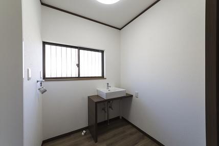 鏡や引き出しが無い洗面台というのも、すっきりしていてオシャレです。