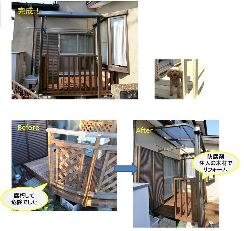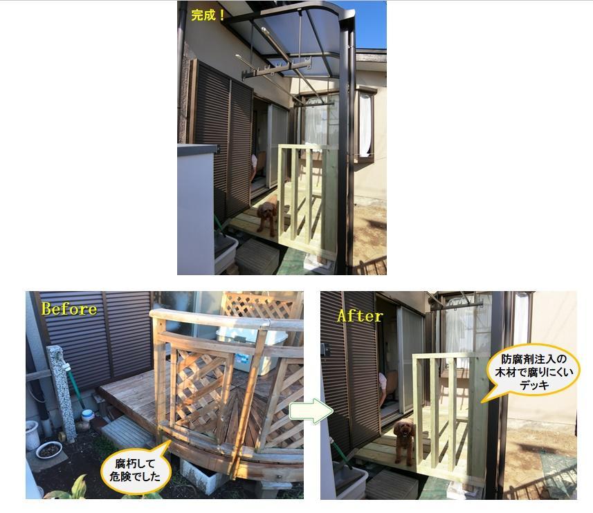 今回のリフォームは、天然木のデッキが傷んだため取り替えたいというお客様のご要望でした。