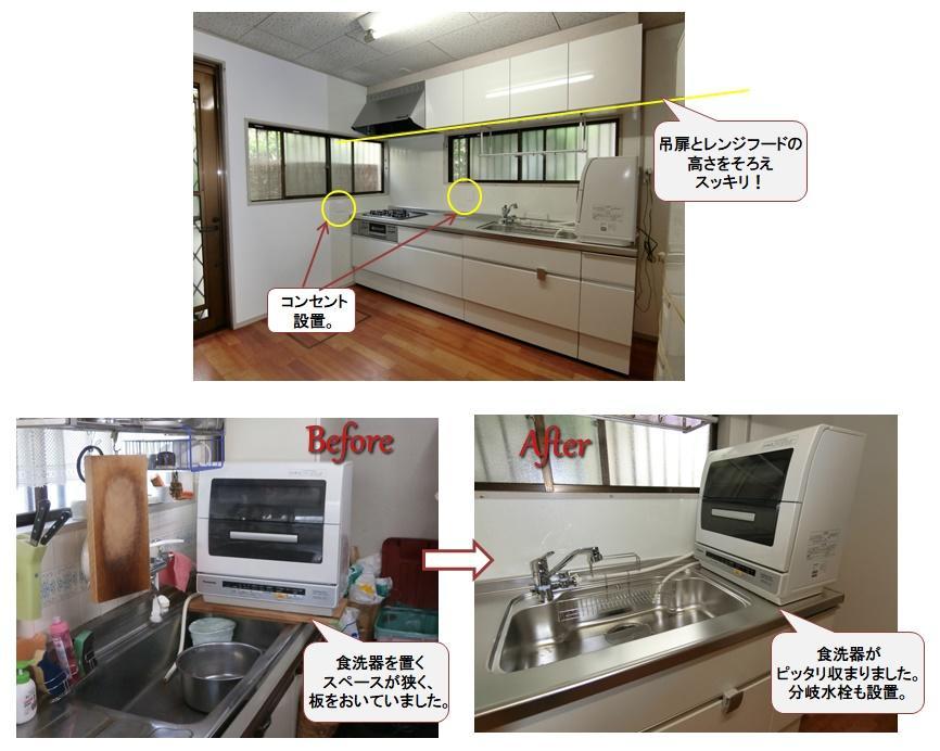 以前は、食洗器を置くスペースが狭く、シンクに板を渡して置いていたという危険な状態でした。