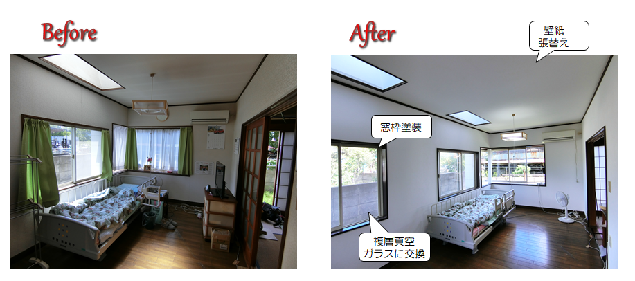 クロス張替え、窓枠塗装、寒さ対策に窓ガラスを複層ガラスに取り換えました。