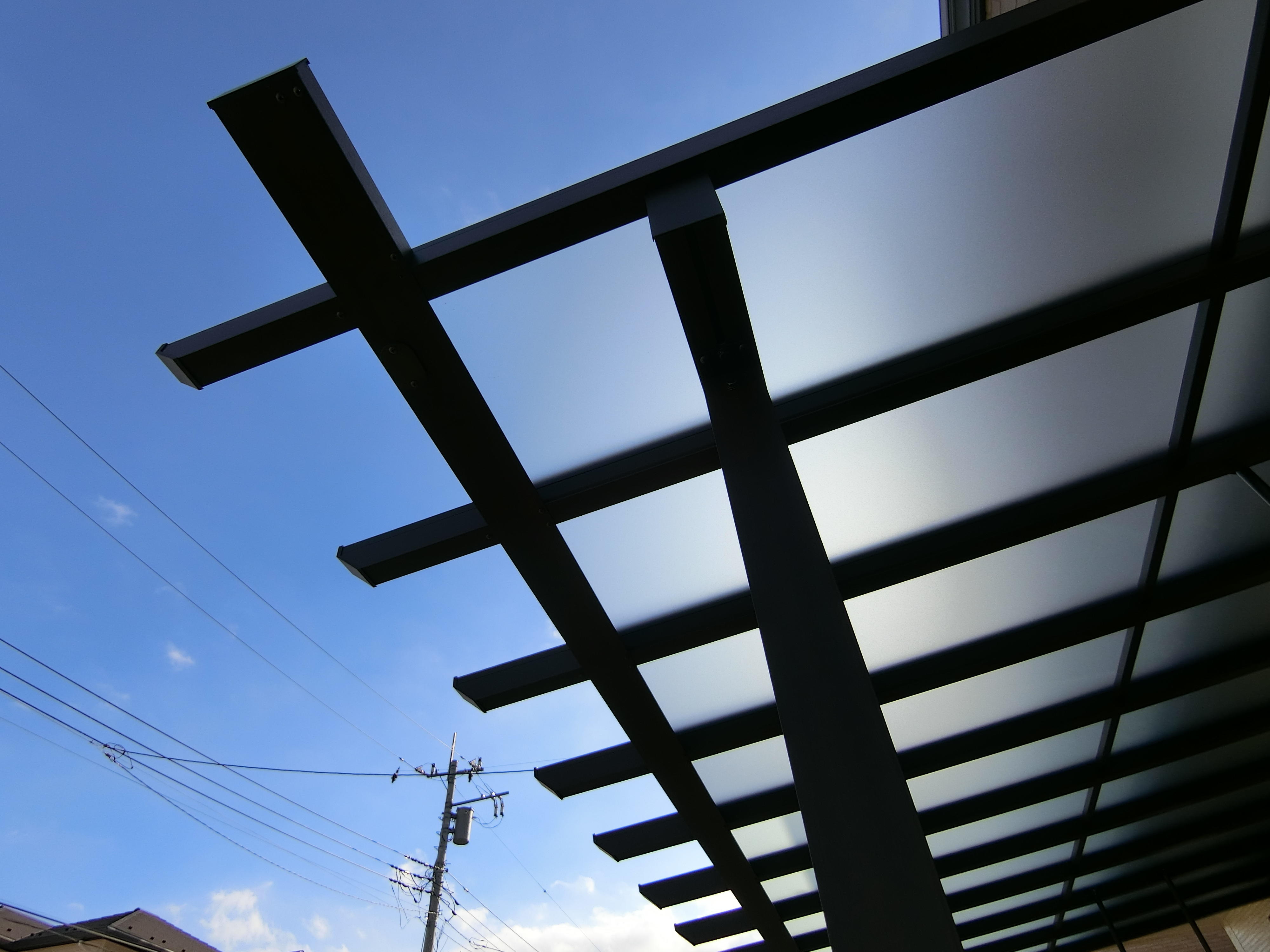 テラス屋根は、垂木を張り出した木組み風のオシャレなタイプを選ばれました。