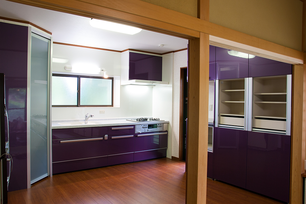 工事中も建具のデザイン等打合せを重ね、ご要望通りに仕上がったと思います。 キッチンに関してもキッチンパネルを貼って仕上がった壁をタイルに変更したいとの施主様の強いご要望でタイル工事が追加になりました。 お選びになったタイルも非常に良くて、なお一層綺麗なキッチンの仕上がりとなりました。