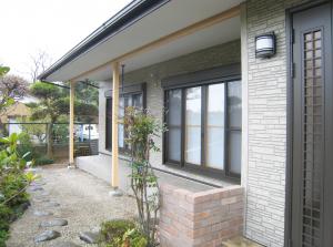 もうすぐ定年を迎える。築20年の平屋住宅を建て替えず柱等をできるだけ抜かず耐震も考え、又、自然素材フルリフォーム。かつては波板のテラス屋根でしたが、現在は落ち着いた外観に大変身しました。定年後ゆったりと過ごせる場所ができあがりました。