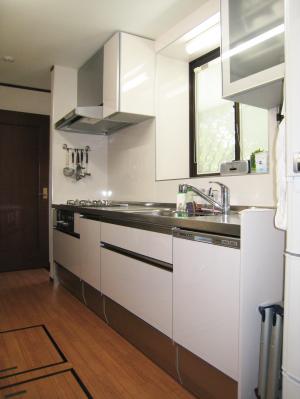 [After] 引出収納と食洗器の採用で、あふれていた台所用品がすっきり片付きました。どうでしょう、とても明るくなりました!