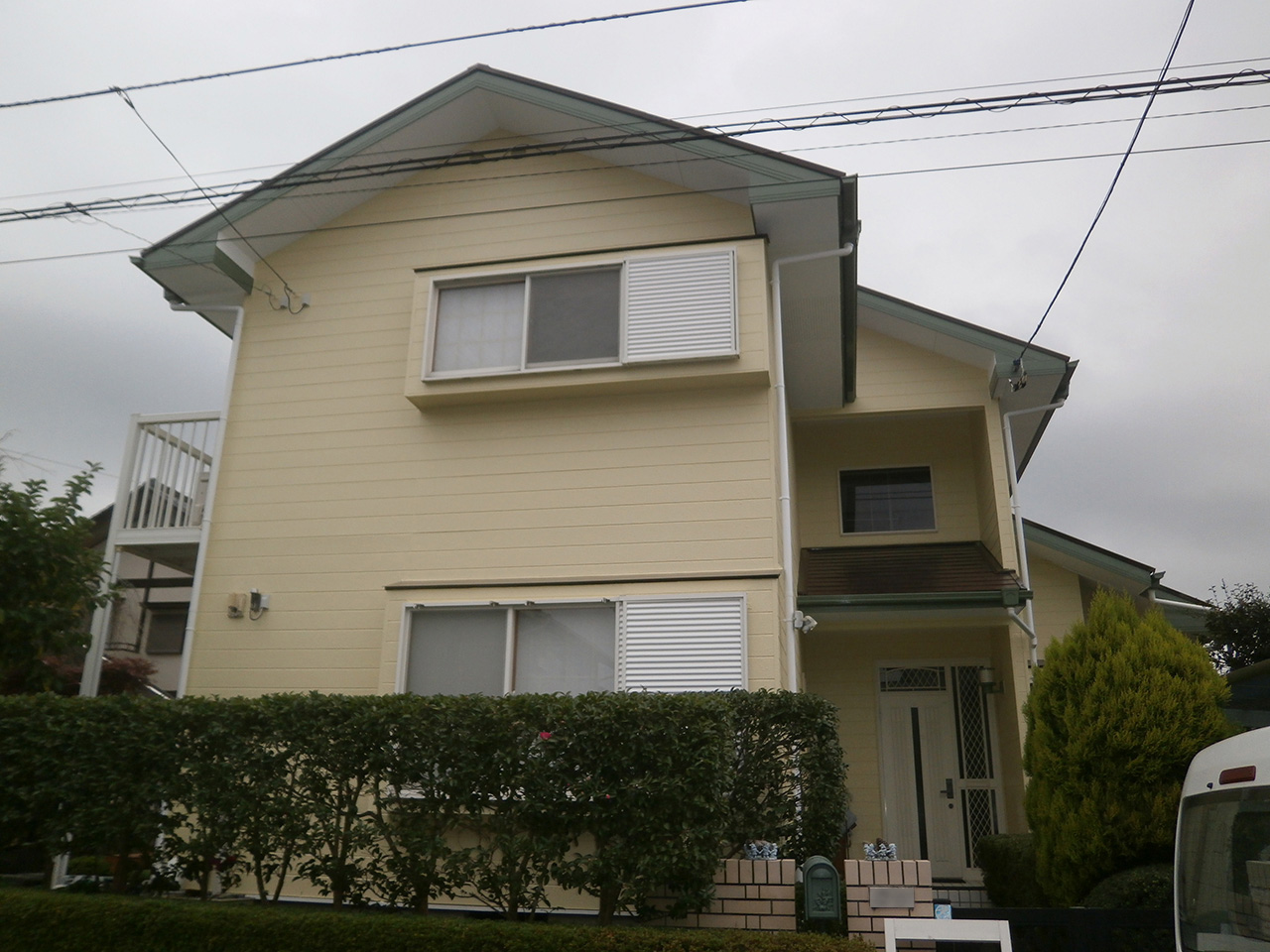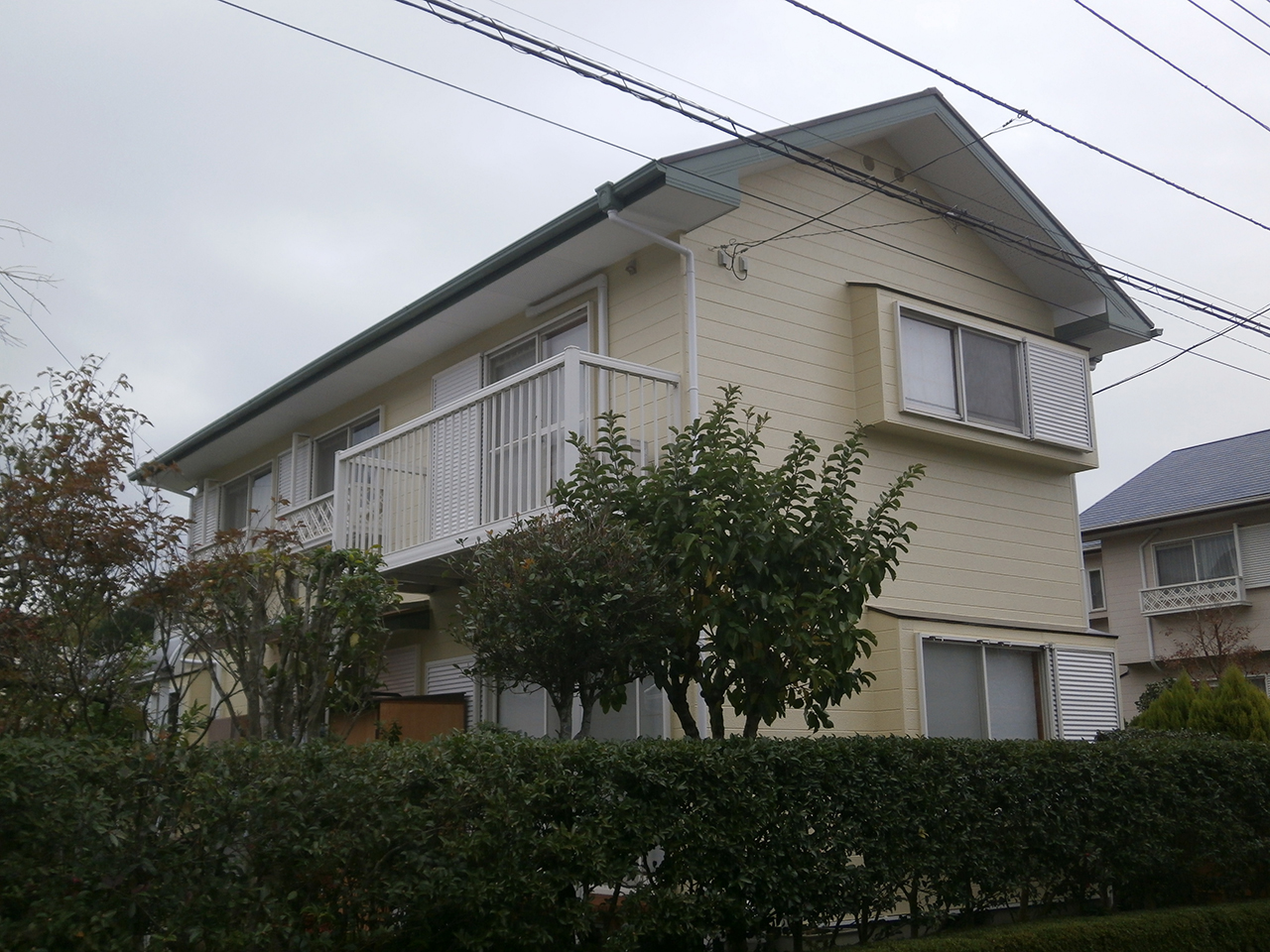 無機塗料での塗装、破風のグリーン系がアクセントになり品よく仕上がりました。