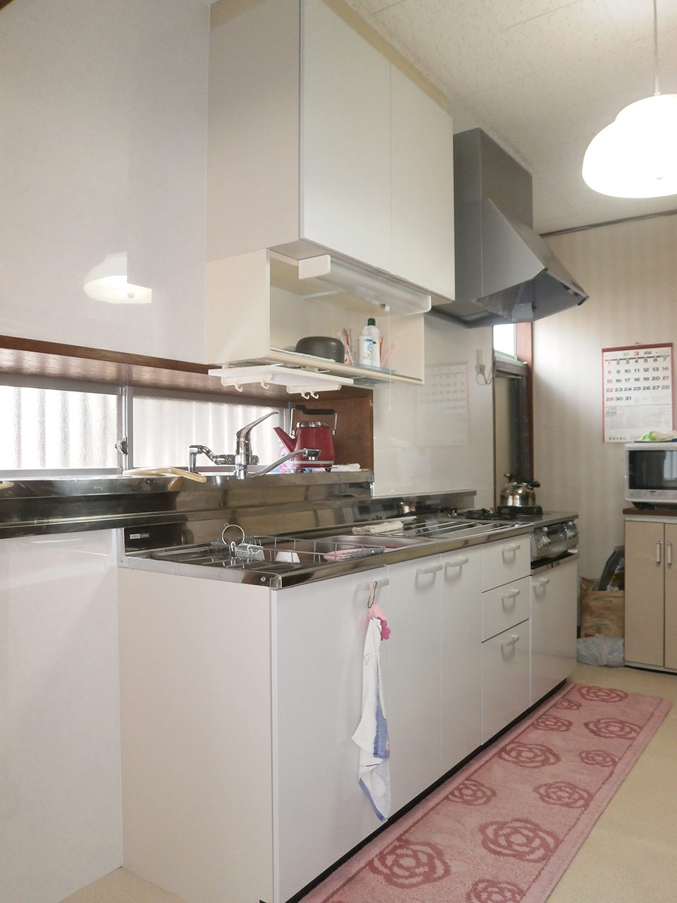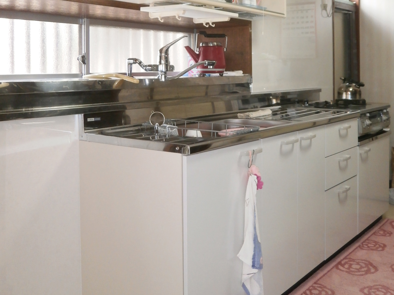 始めは今主流のシステムキッチンにしようか迷われていたのですが、一人暮らしという事と、今まで使っていたセクショナルキッチンの使い勝手が良いとの事から、キッチンの間口を縮小し、同形のセクショナルキッチンを提案・取付させて頂きました。 水栓金具を交換されたばかりなので、既存の水栓金具をそのままお使いいただける形にし、お客様のご予算・ご要望にも配慮させて頂きました。 キッチンが広く使いやすくなって良かったと喜んでいただき、担当としても嬉しい限りです。