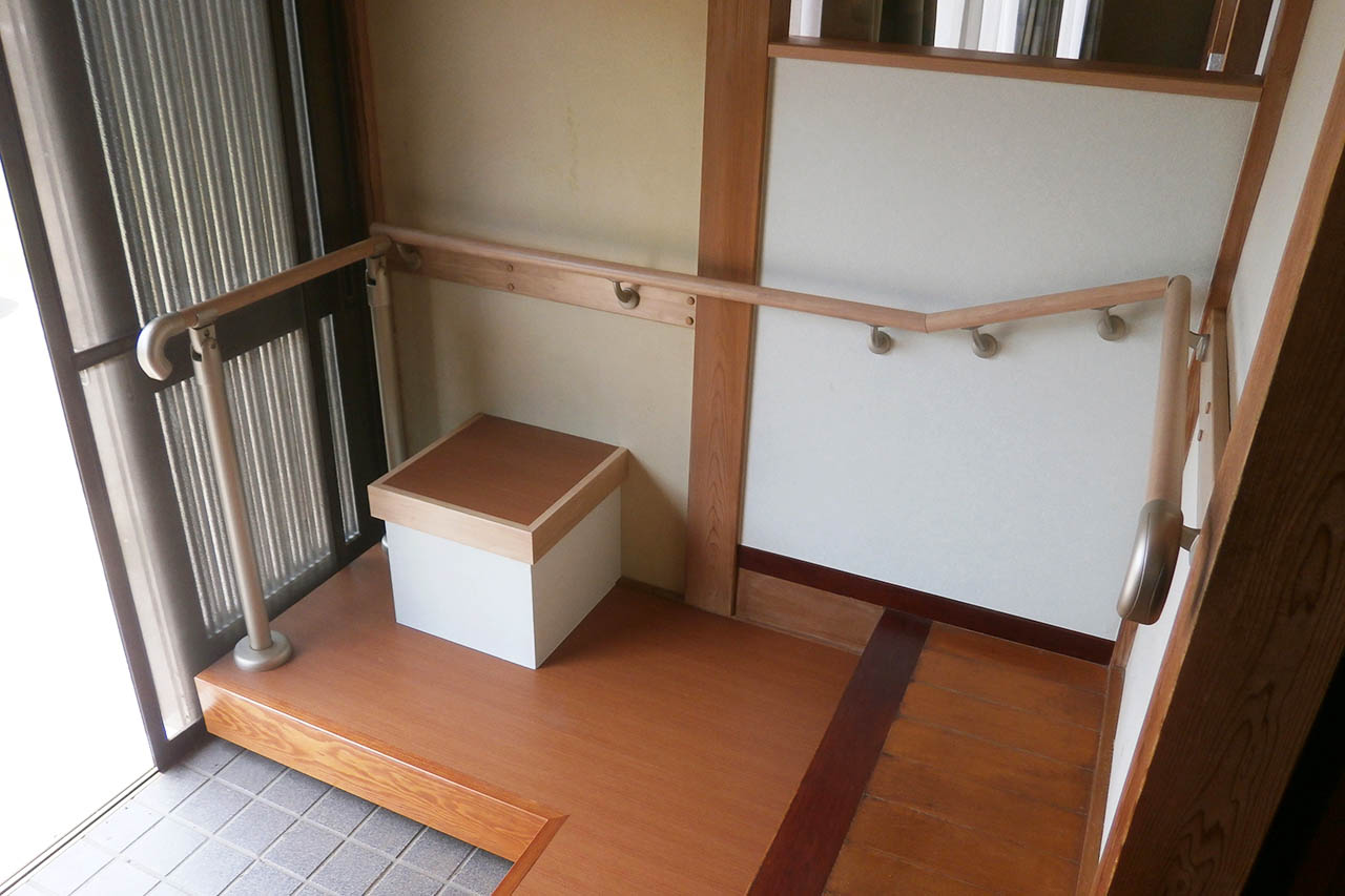 お年寄りには上り下りの辛い玄関、式台を造り増しすることで安全性を高めます。
